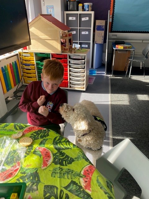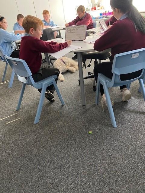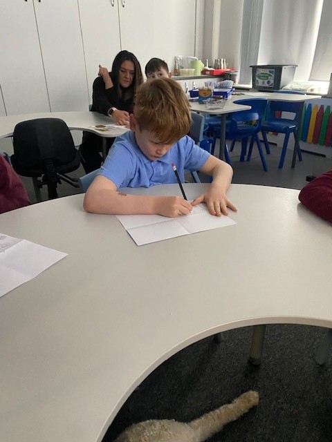 Peanut showed them just how much he helps us to settle in to school each day and how he likes to stay close by when we start our lessons.