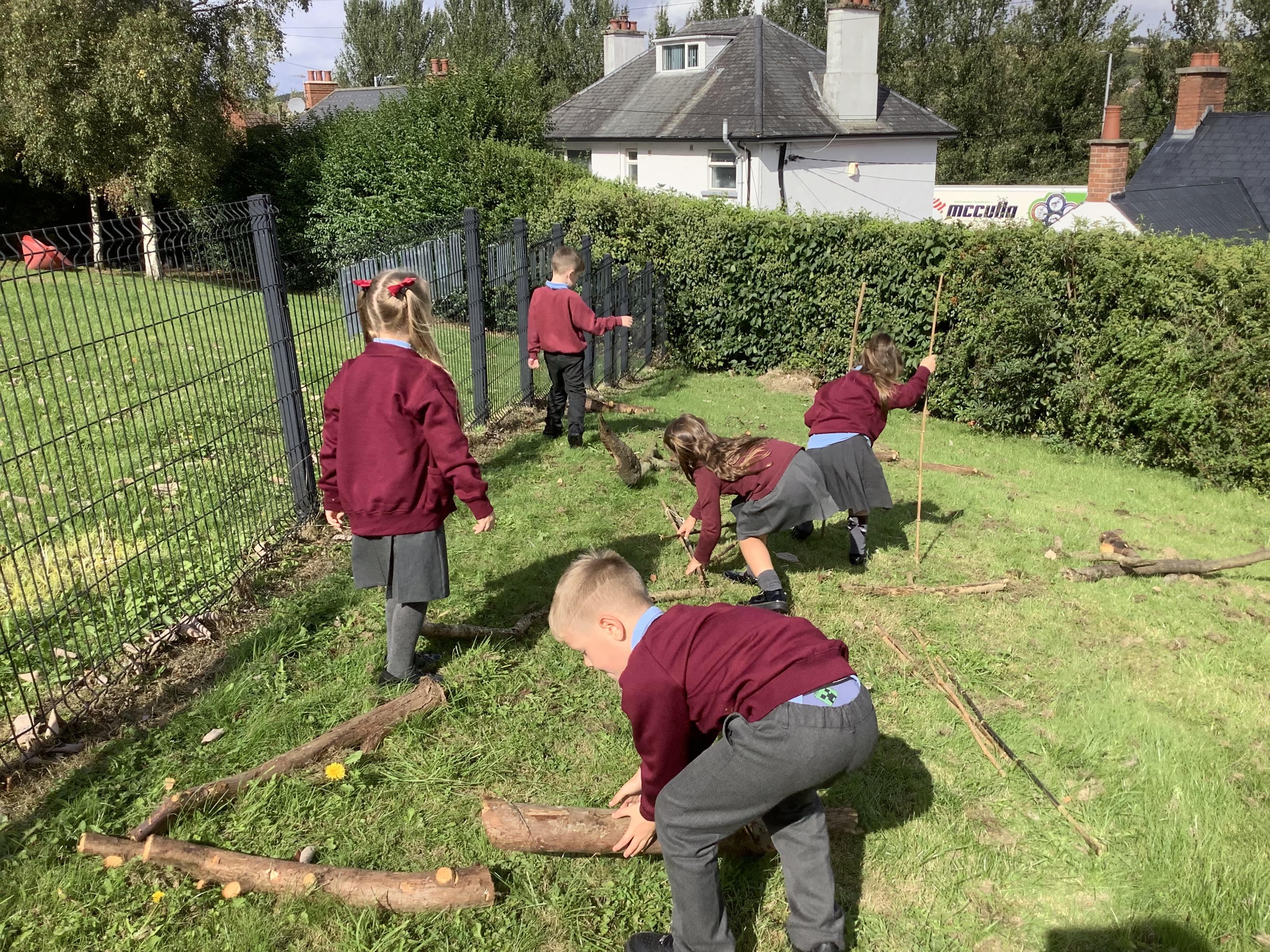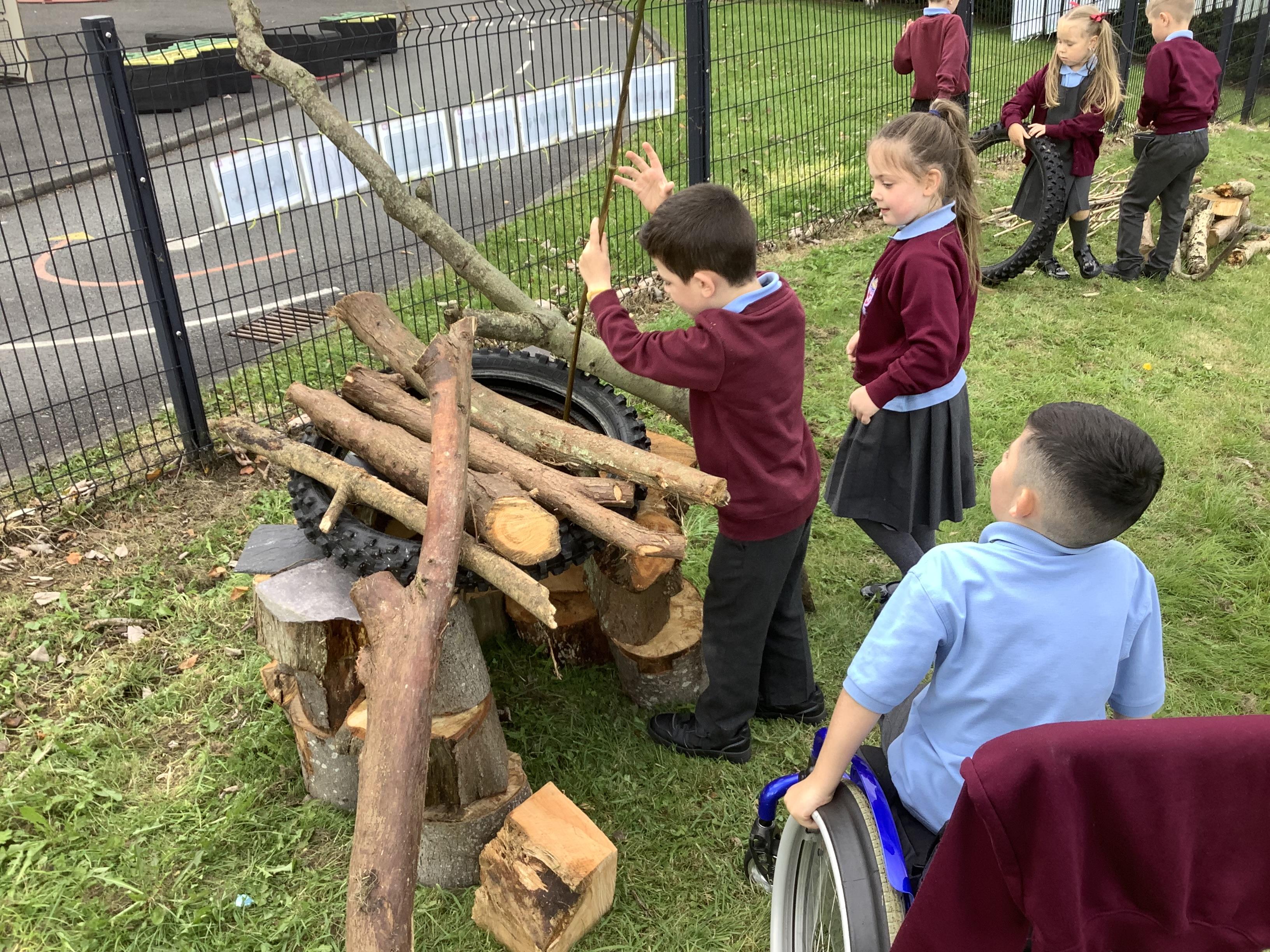 In P3G, we love going to Forest School! We love building dens, playing in the mud kitchen and making artwork with natural materials. Have a look at our photos of us in action!