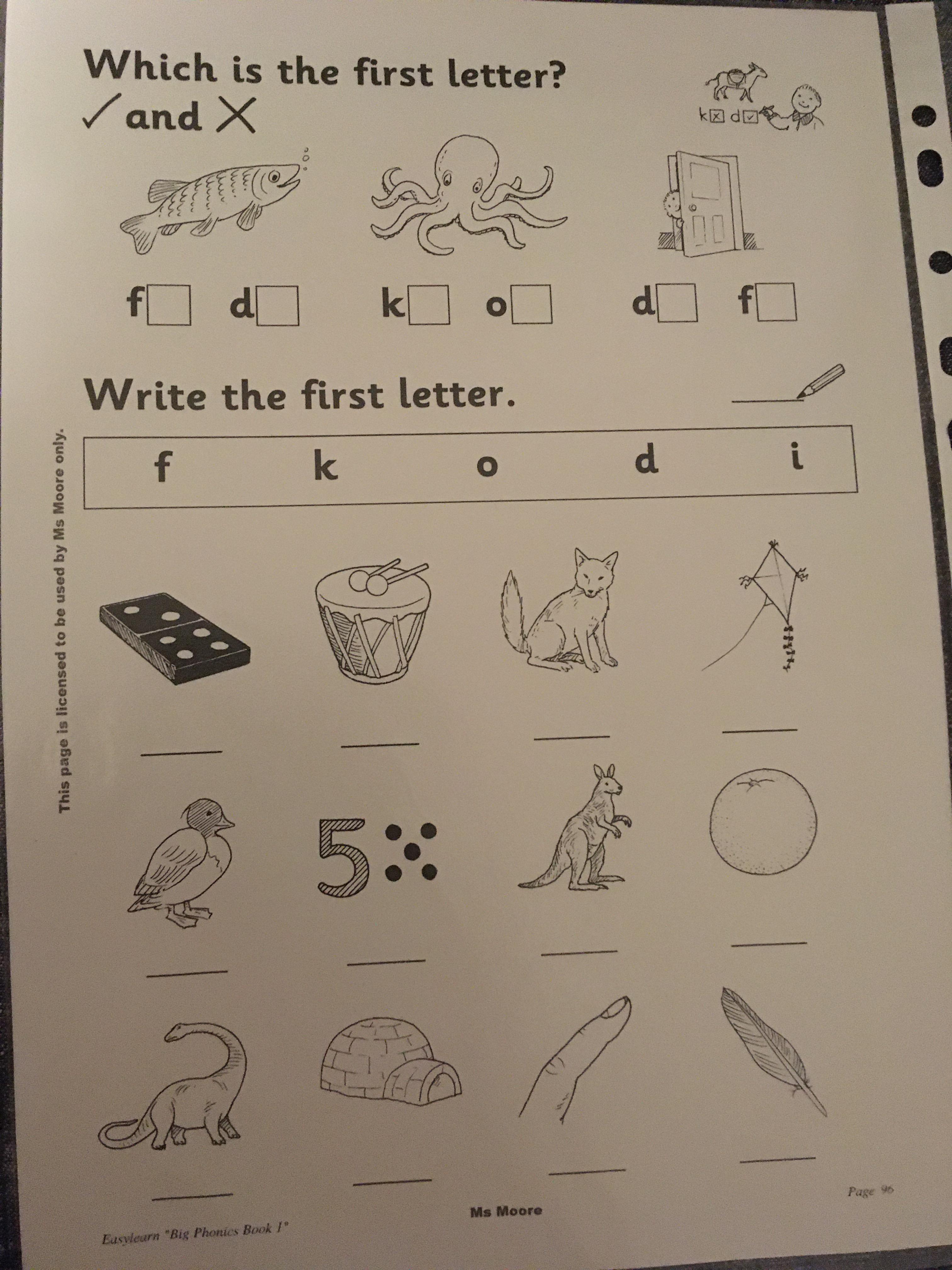 Today you will be using your phonics to work out which letter you can hear at the start of each of the words. Take you time.