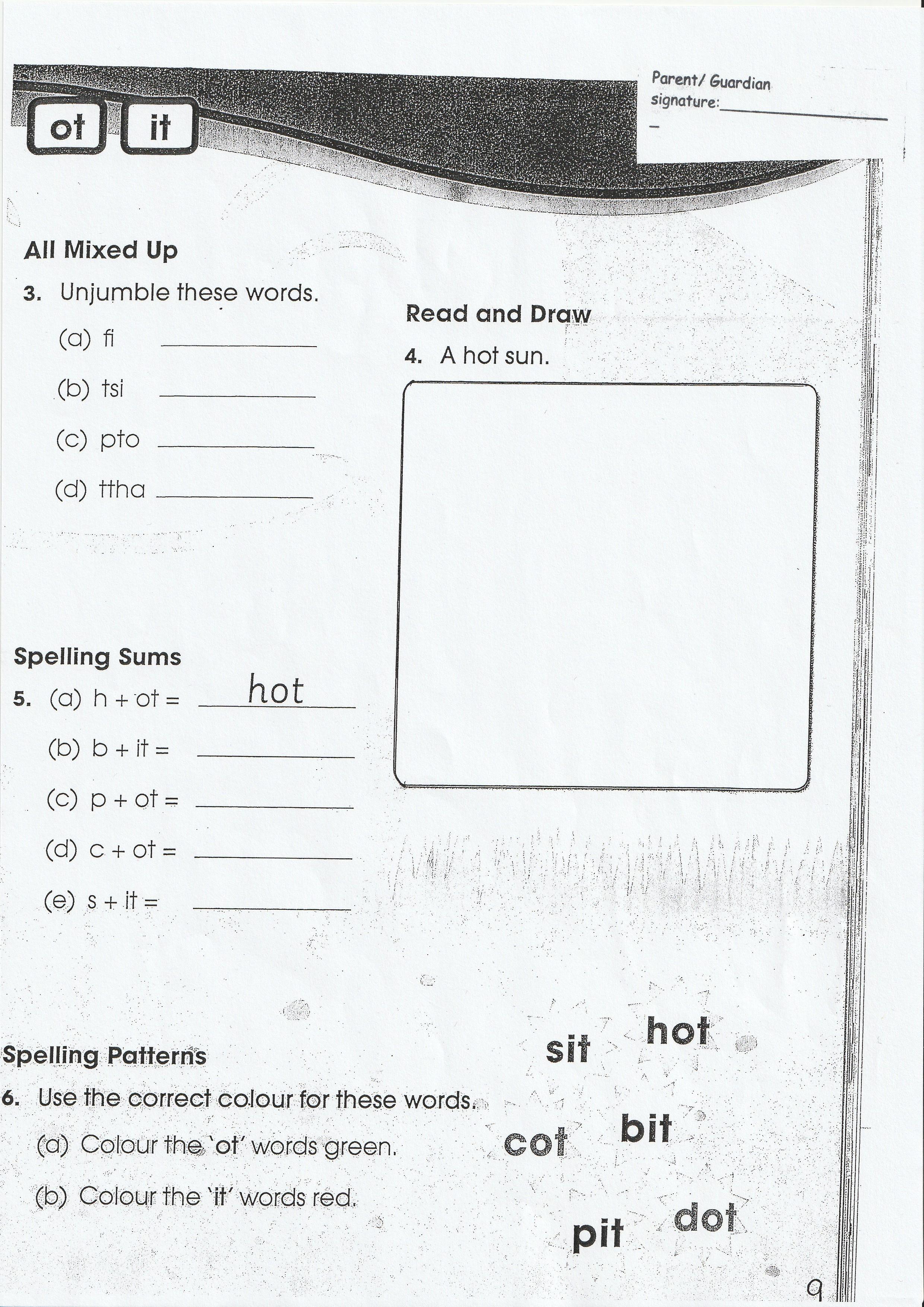 Can you unjumble the words, draw the picture, solve the spellings sums and find the pattern in the words?