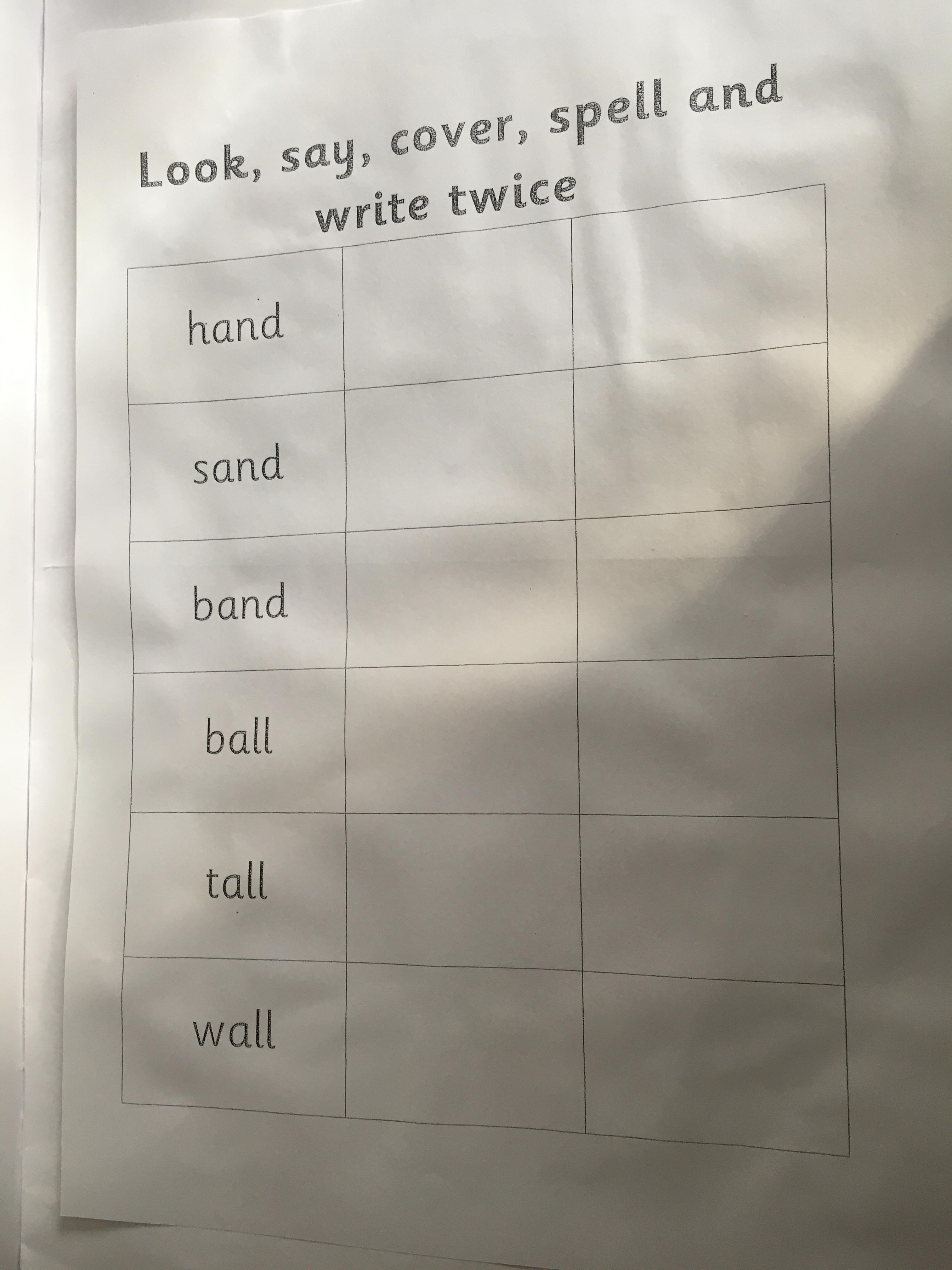 Today it is time to " Look, say, cover, spell and write our spellings twice or two times".✏️