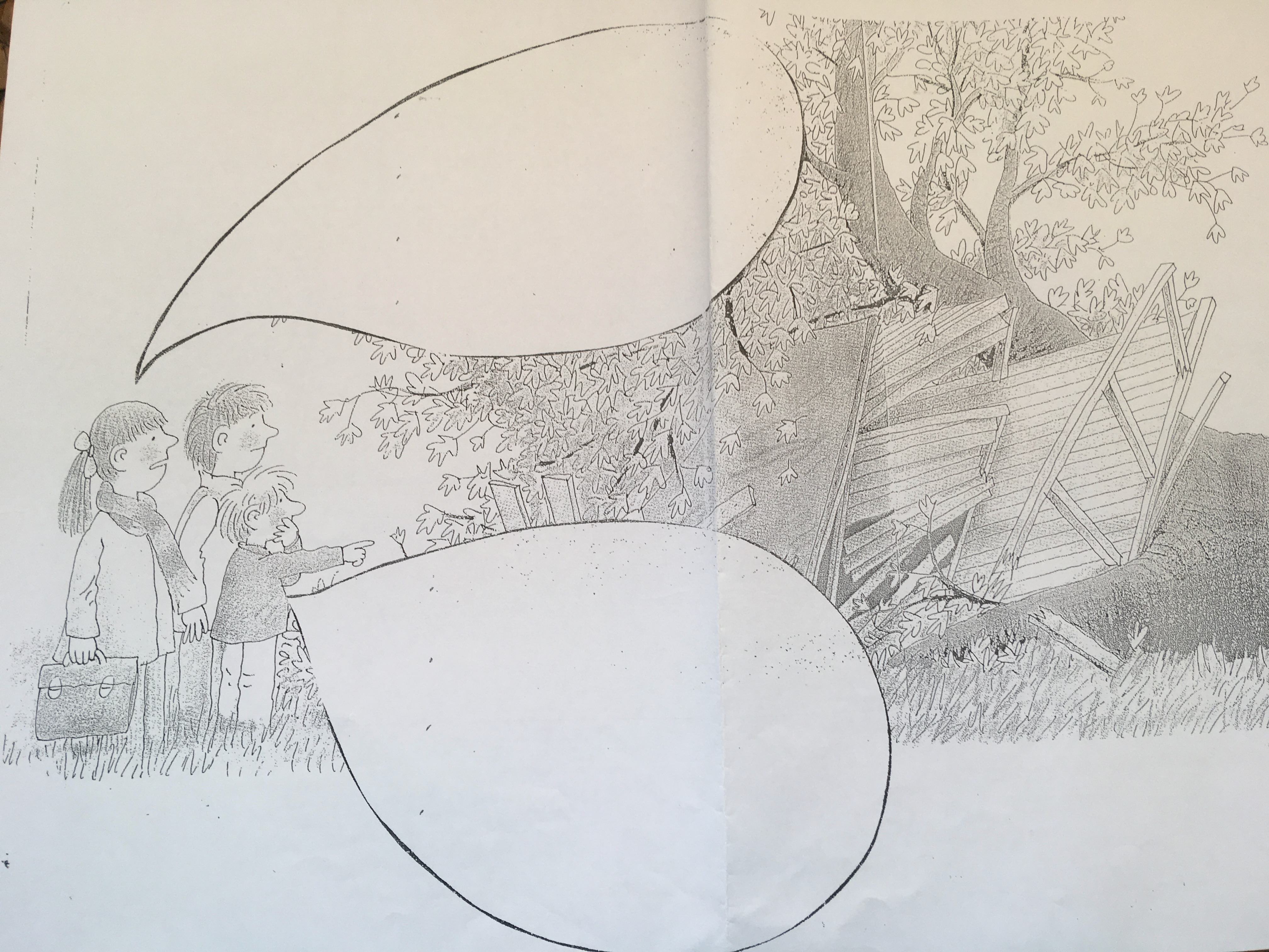 Today we are thinking about the story you have just heard. Have a look at the picture below and think about what the people are saying. We would like you to try to write the words that they are saying in the speech bubbles. If you don't have a printer, draw the picture yourself and make your own speech bubbles.