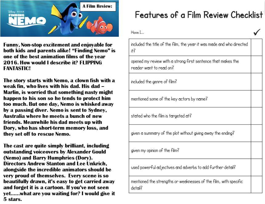 You can also check out Miss Duggan’s review of ‘Finding Nemo’ below – can you spot the key features of review writing in the text?