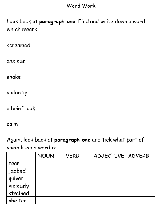 Today we would like you to attempt the two tasks in the document below entitled 'Word Work'.