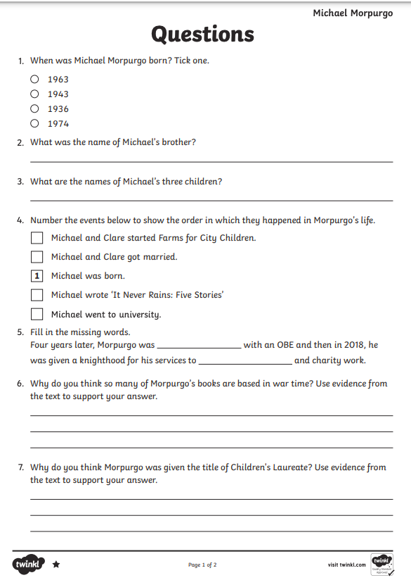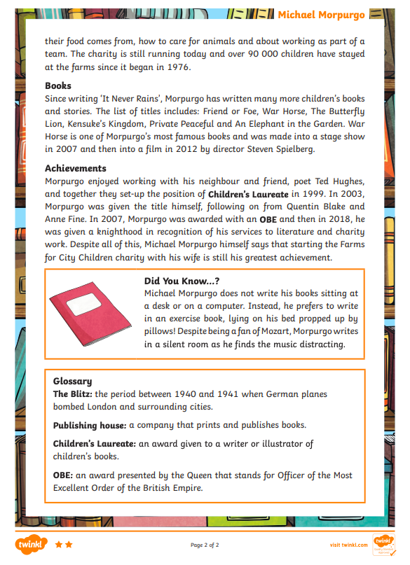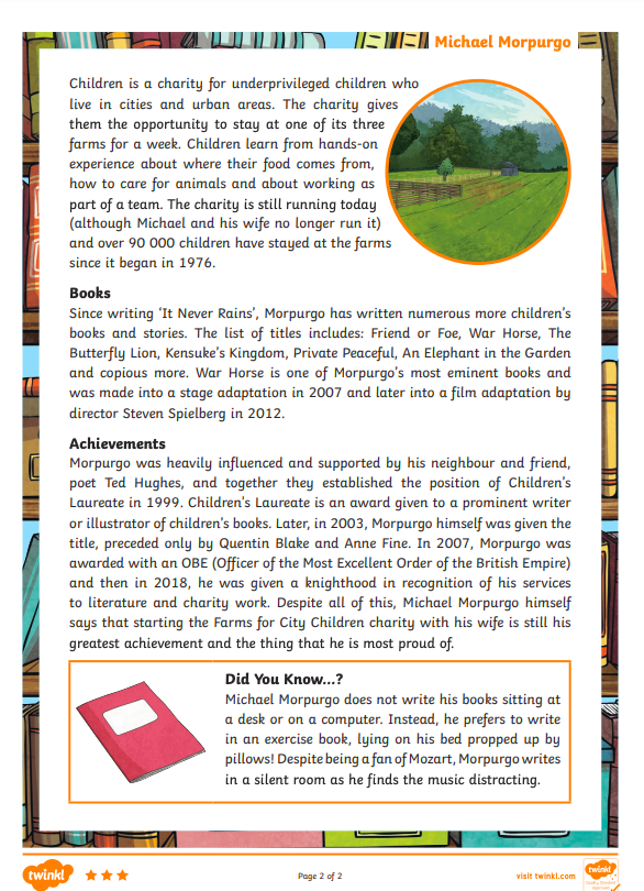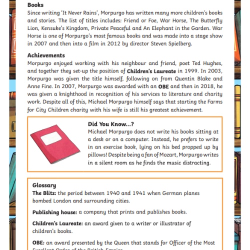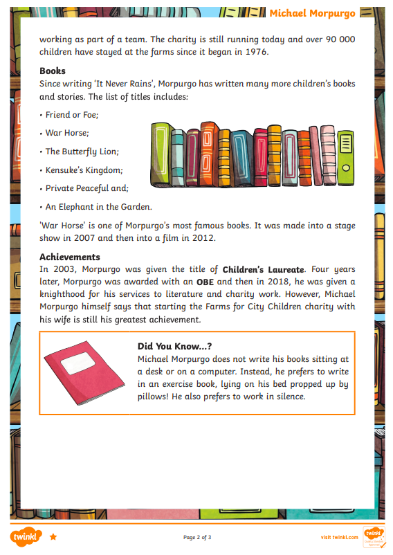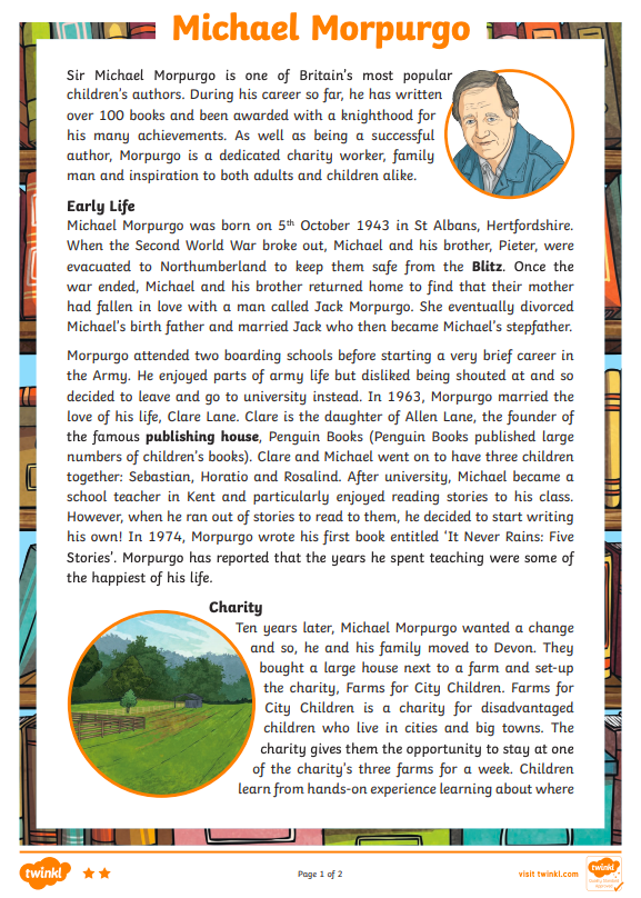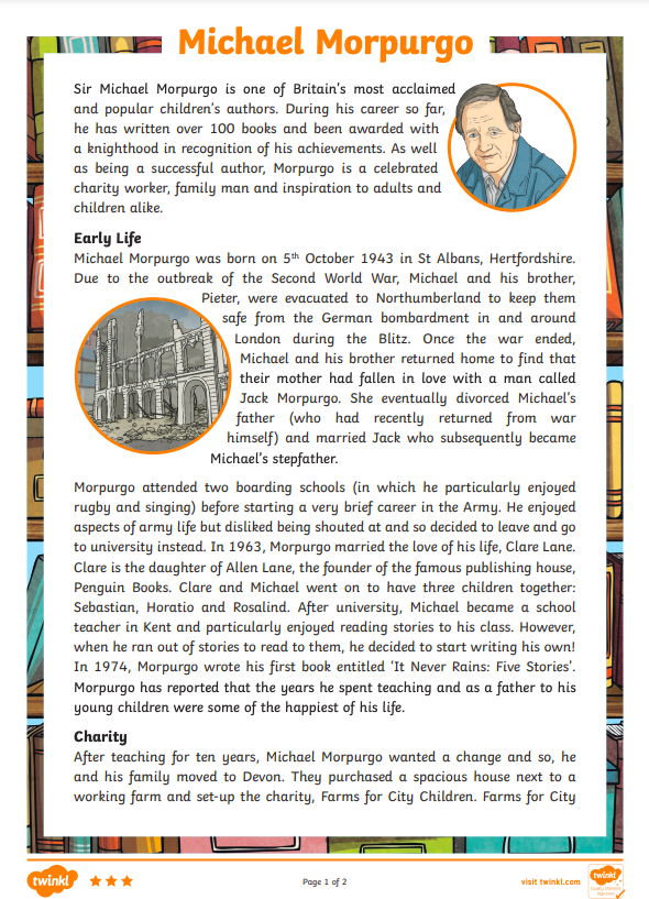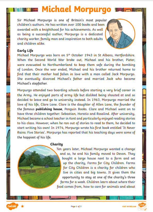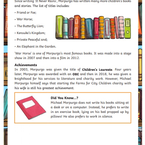 Many of you will have heard of Michael Morpurgo. He is one of Britain's most popular children's authors and has written more than 100 books!