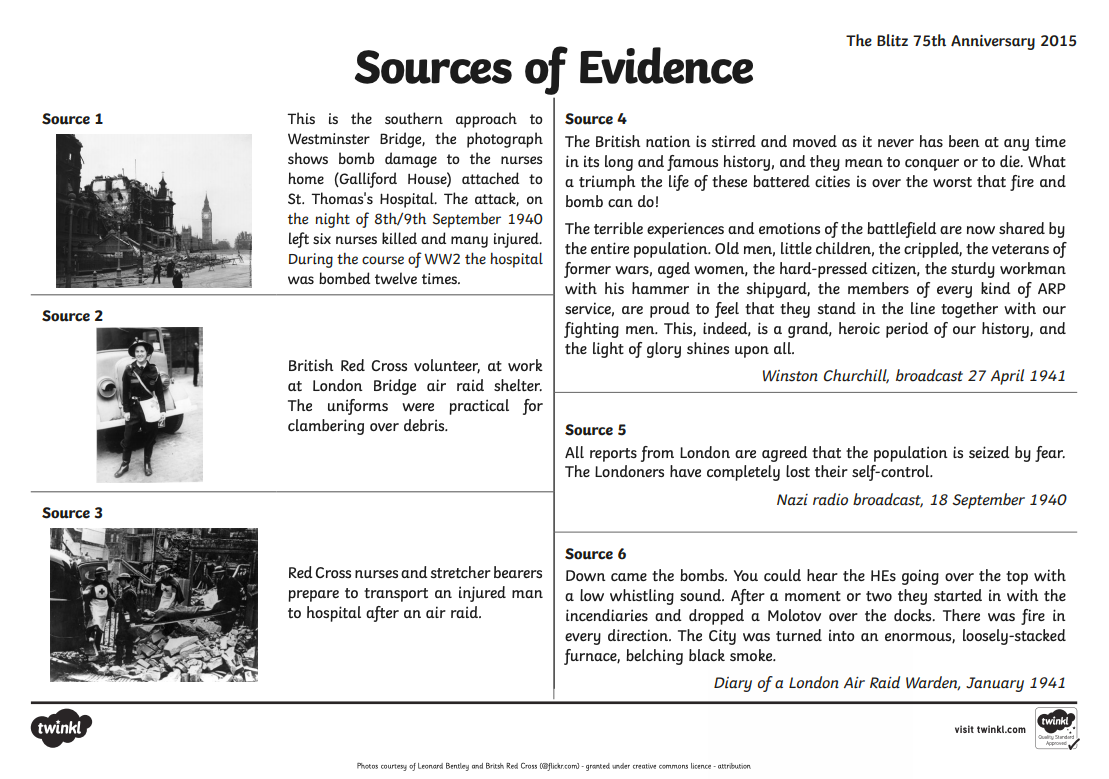 Sources can be thought of as types of evidence and would include newspaper articles, photographs, letters, artefacts (objects) from this period of history and diary entries.