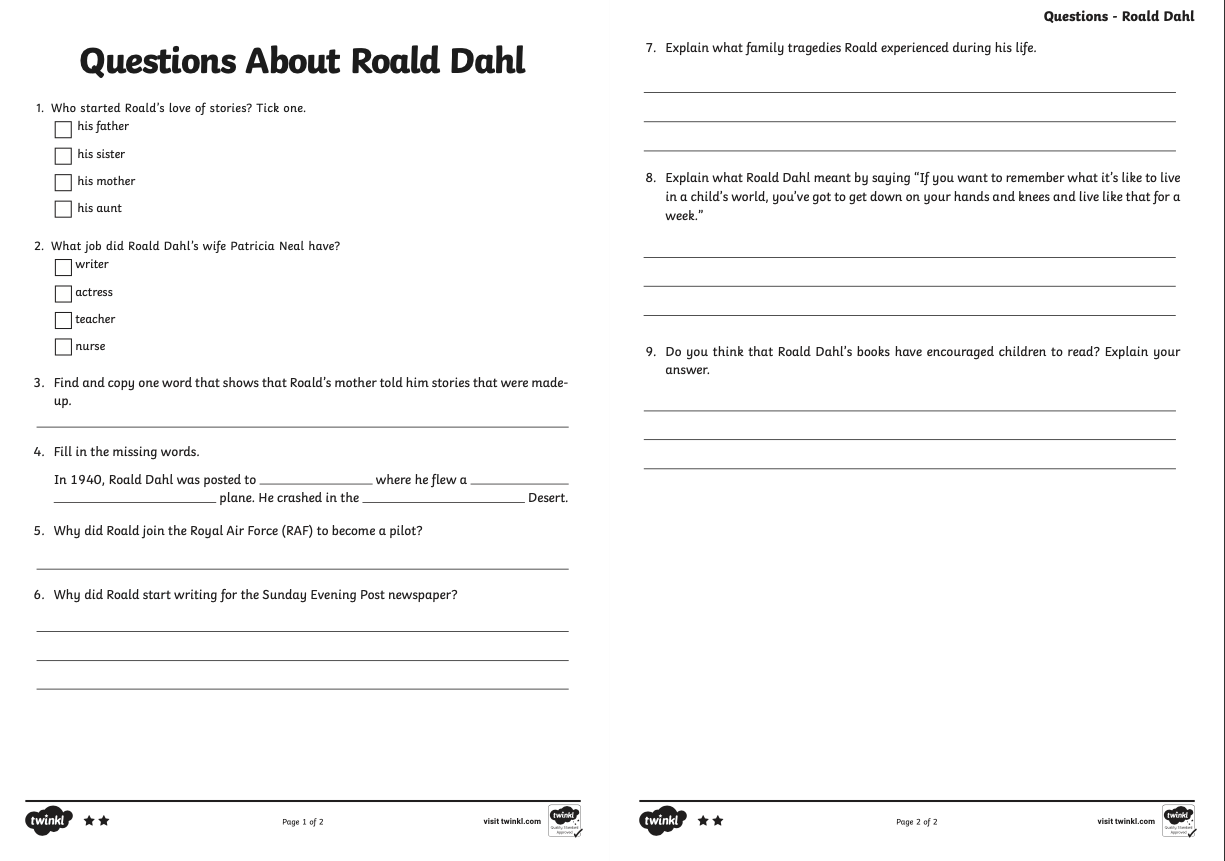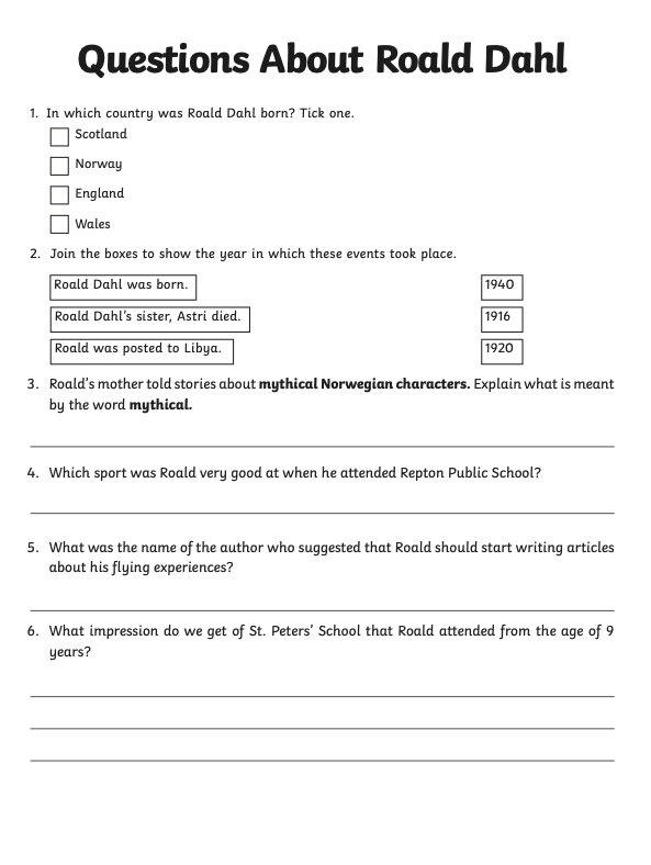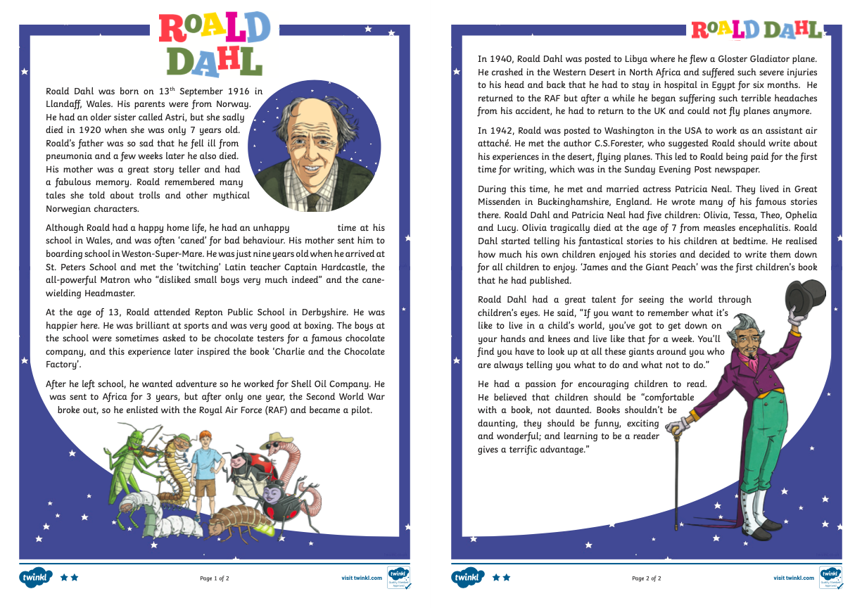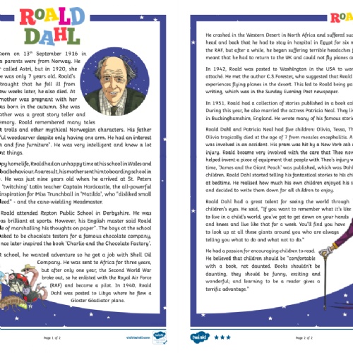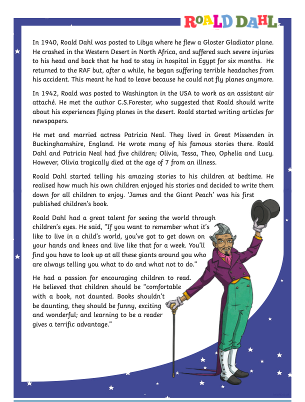 As this week is World Book Week, your reading activity today is based on the well known children's author Roald Dahl.