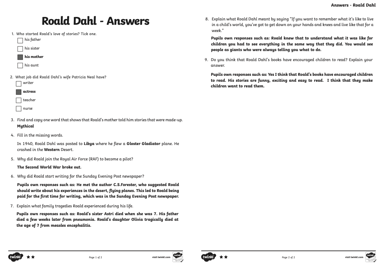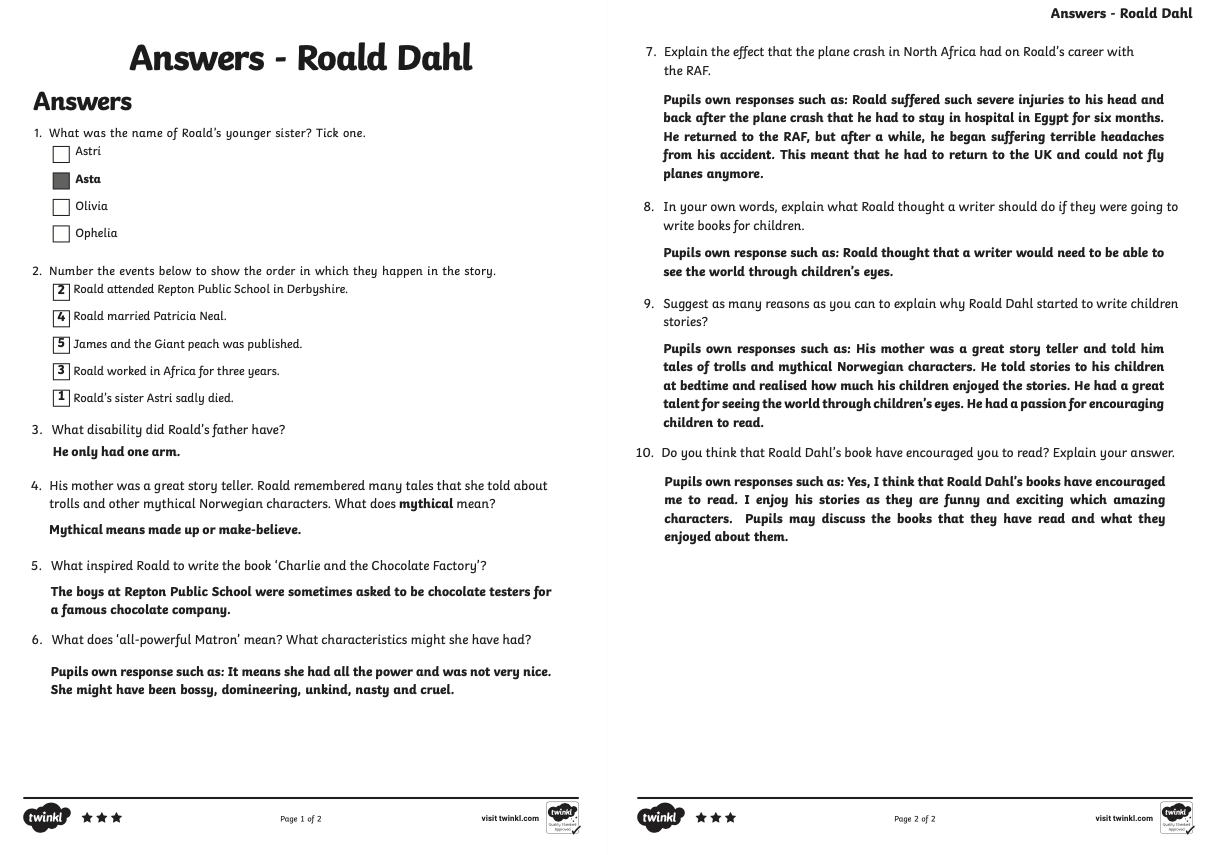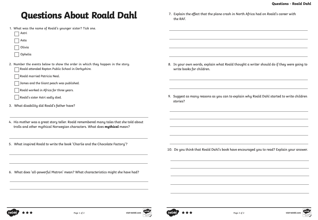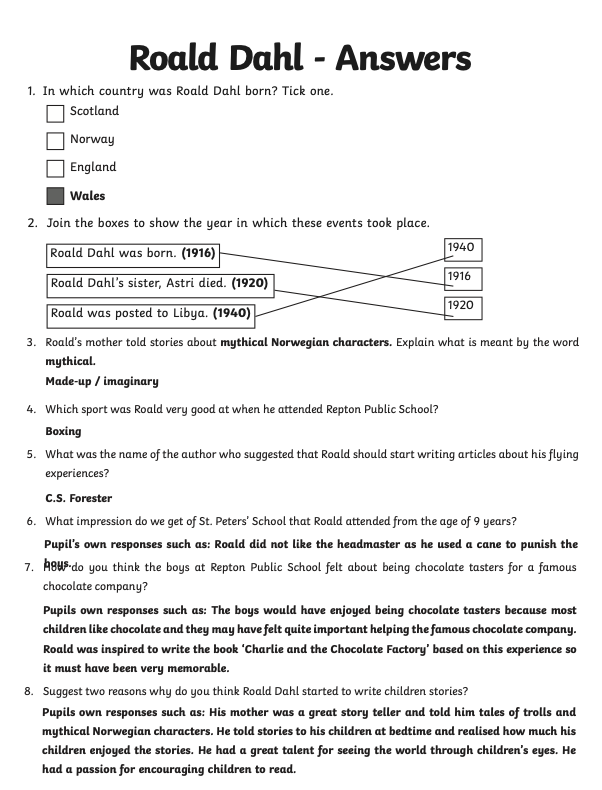 As this week is World Book Week, your reading activity today is based on the well known children's author Roald Dahl.