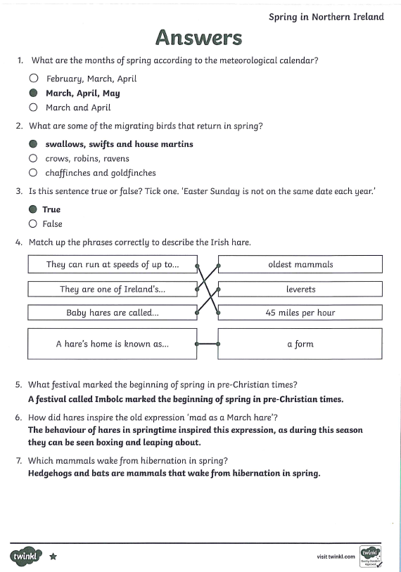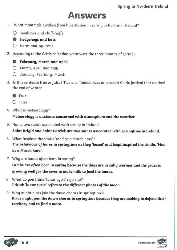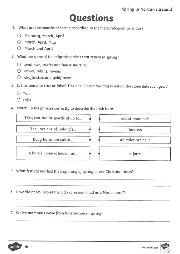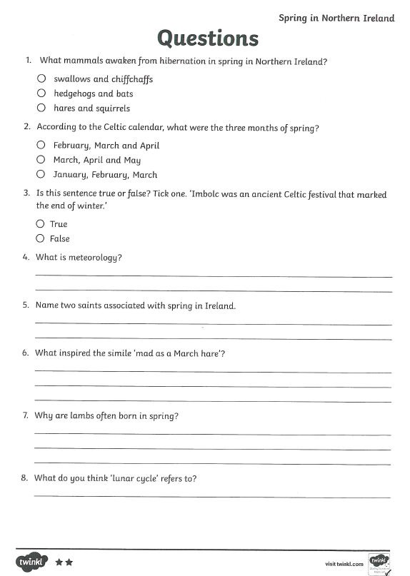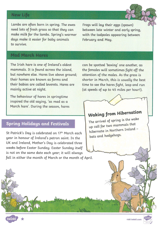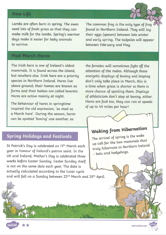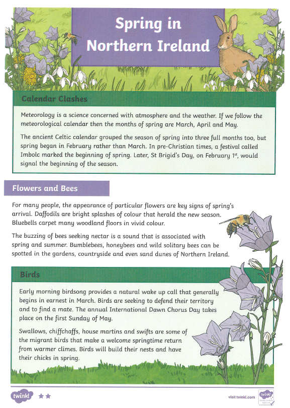 Today you are going to attempt a reading task called 'Spring in Northern Ireland'.