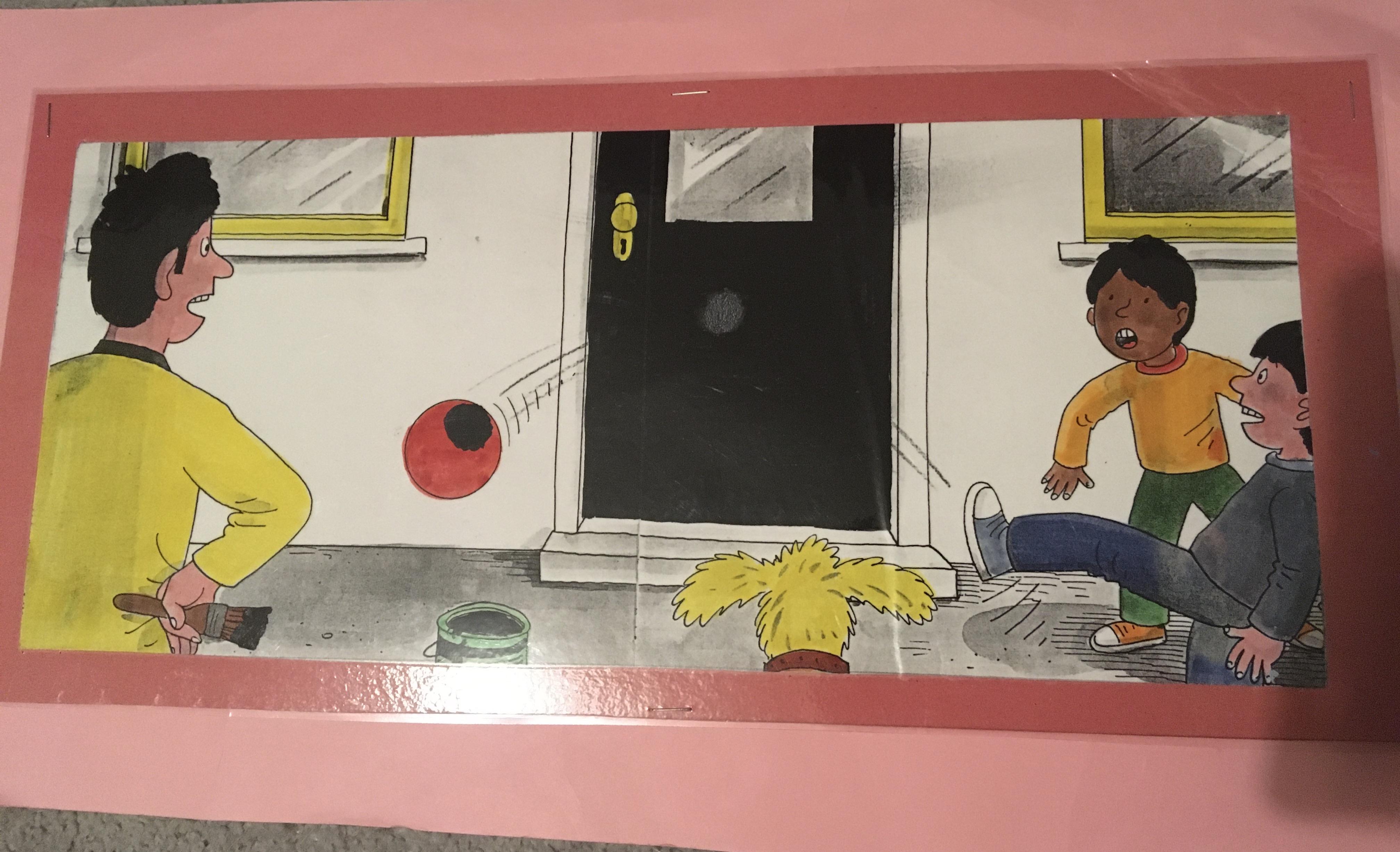 We are thinking again about speech bubbles. Today you have heard a story read to you by Mrs Massey. Have a look at the picture and have a think about what the people might be saying.