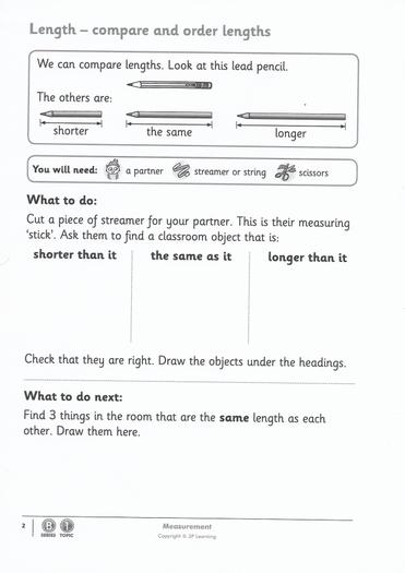 Today we are doing some comparing and ordering. We want you to think about the terms LONGER than, SHORTER than or the SAME as.