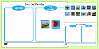 Click on the link below and either print out the pages and cut and stick them into the correct set or you could look at the screen and tell an adult which set they would belong in. Maybe you could even make your own sets of wheels/no wheels using vehicles you have at home?