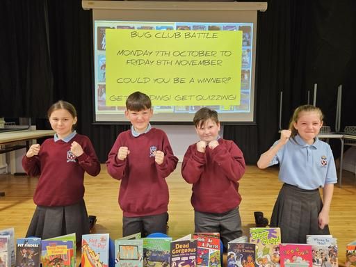 For four school weeks from Monday, all P2 to P7 pupils can log into their Bug Club online account, read their allocated books, answer the quiz questions and battle their classmates to become victorious by Friday 8th November!