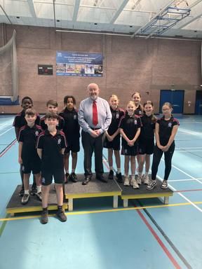 Well done to our P7 pupils who competed in the Sports Hall Athletics Event at the the Lagan Valley Leisureplex. Here they are pictured with Councillor Higginson.