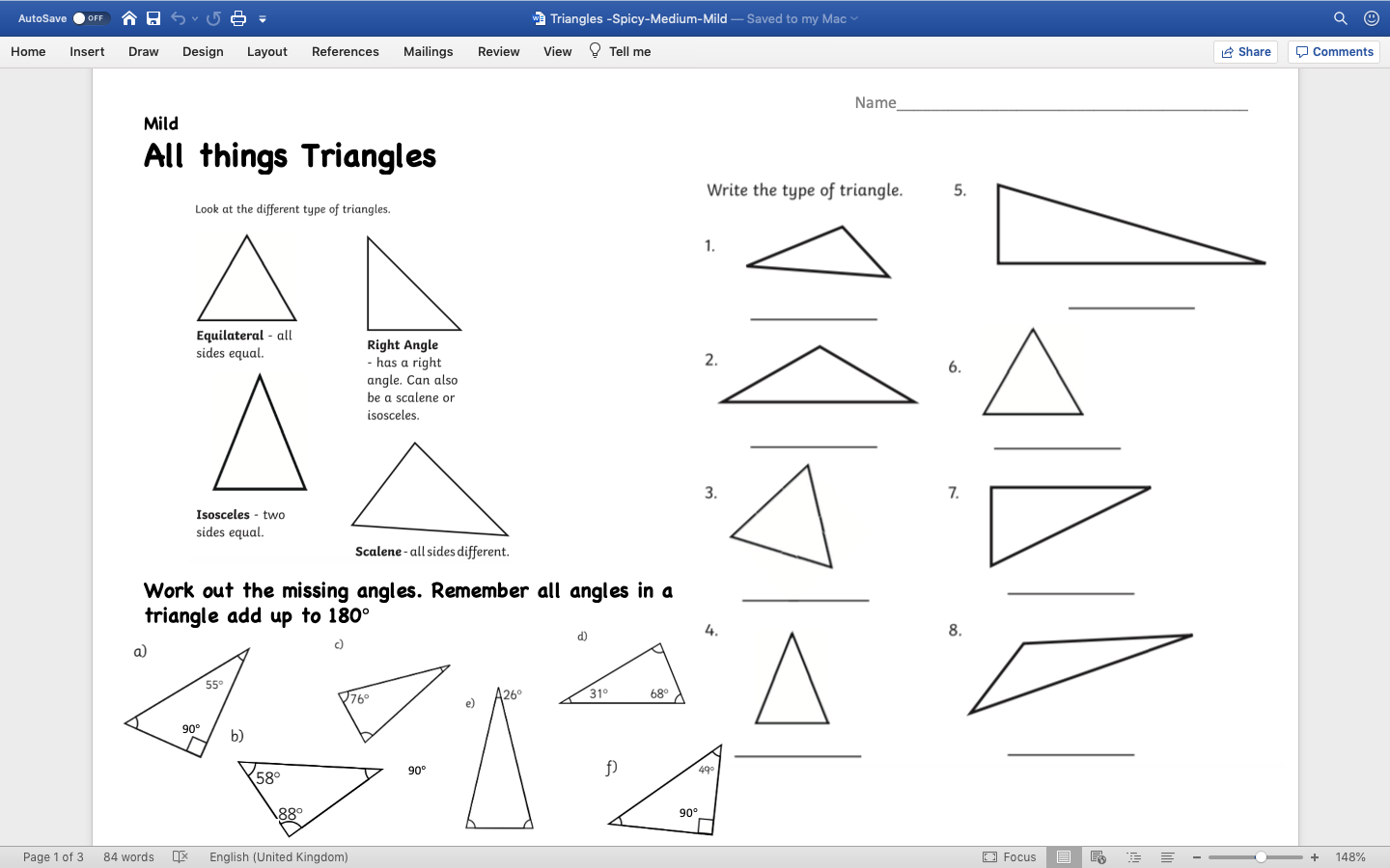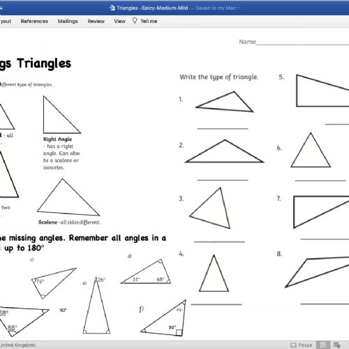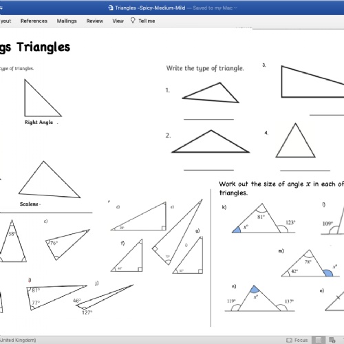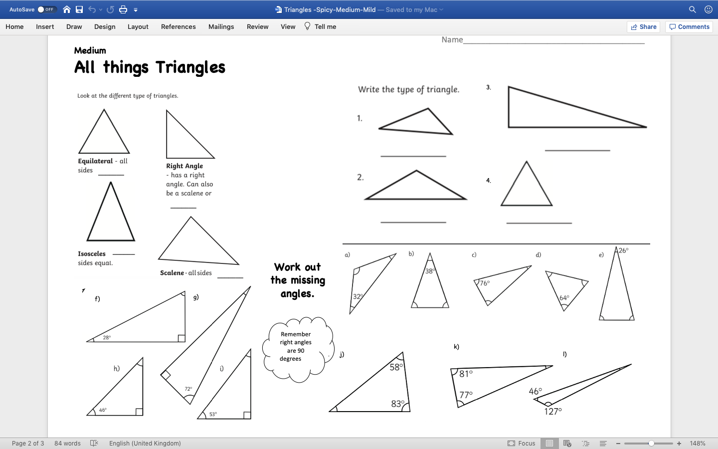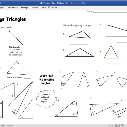 You will need to think about the 4 different types of triangles - look out for some helpful hints on your worksheet!
