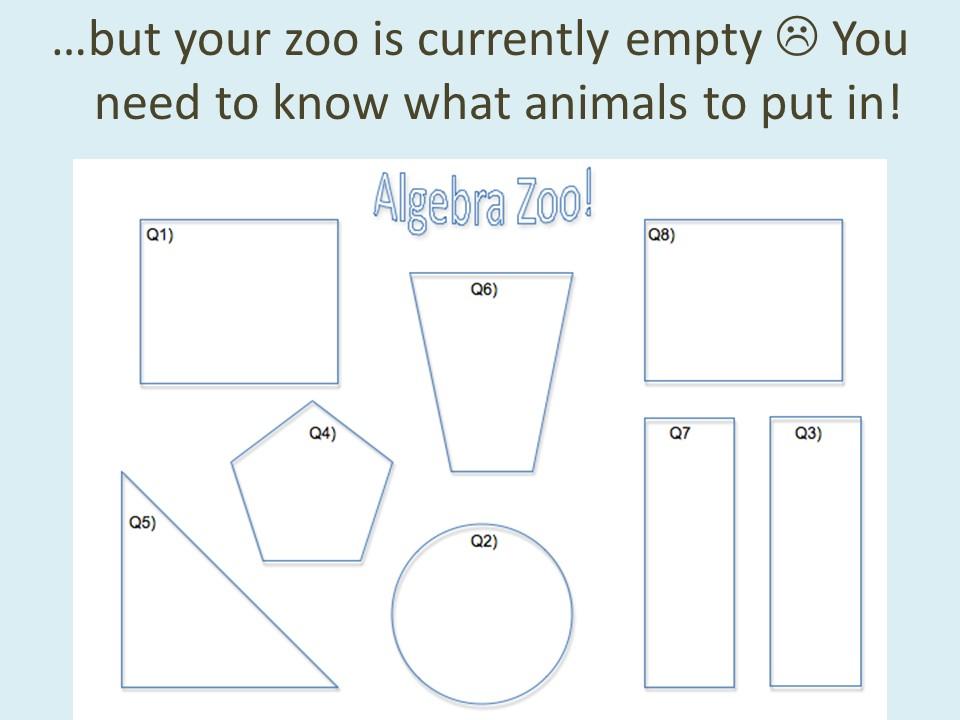 Look through the PowerPoint slides below to read all about today's task - Algebra Zoo!