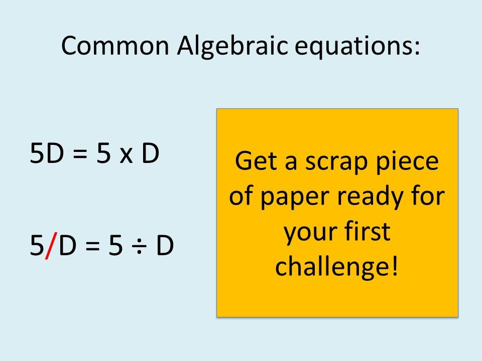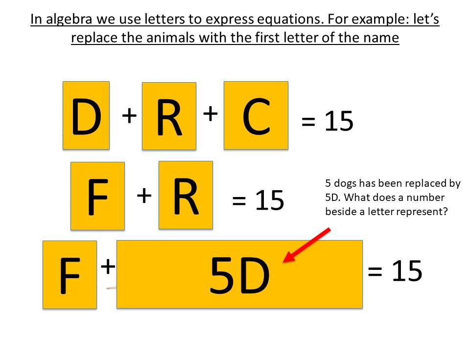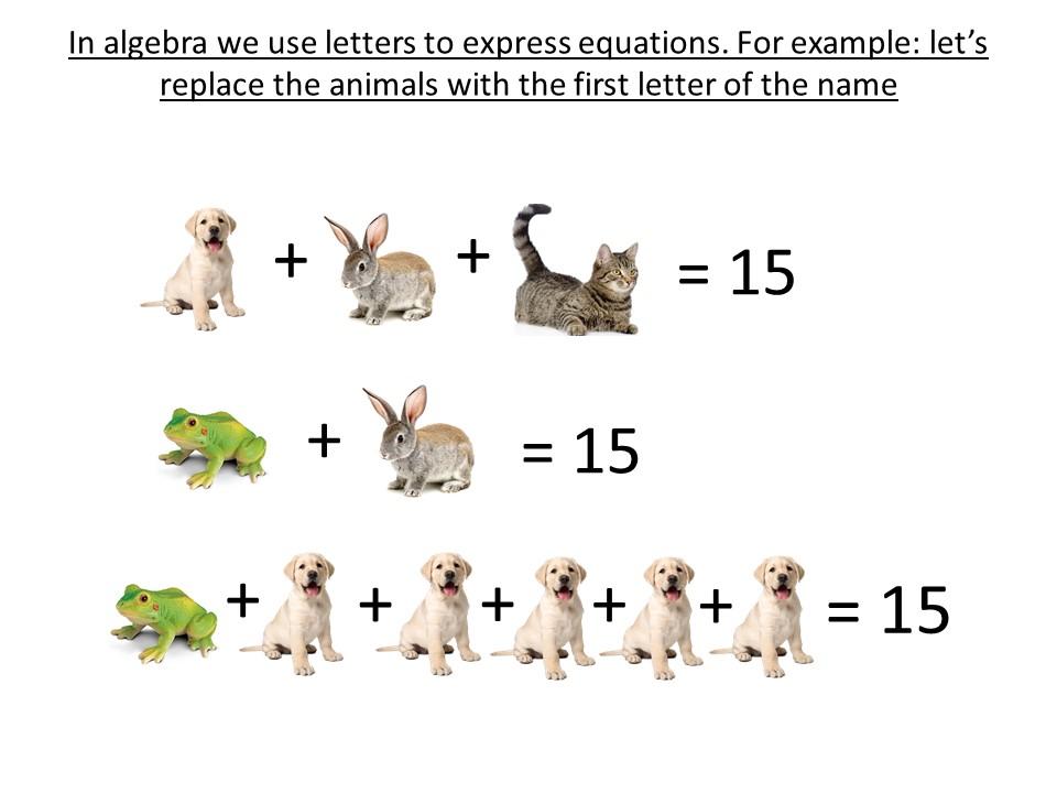 Algebra is when we replace a number with a letter