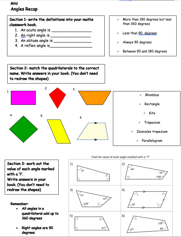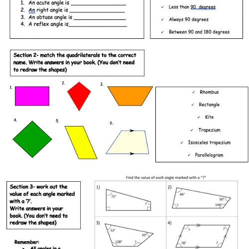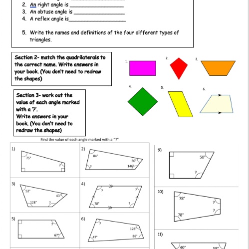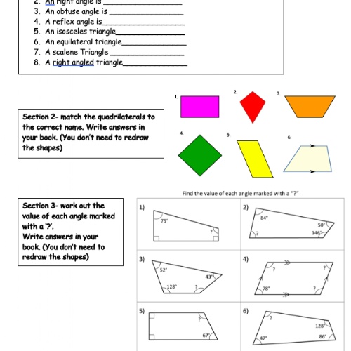 You will also be naming quadrilaterals and working out the size of any missing angles. If you are still having trouble, take another look at last week's work on 2D shape.