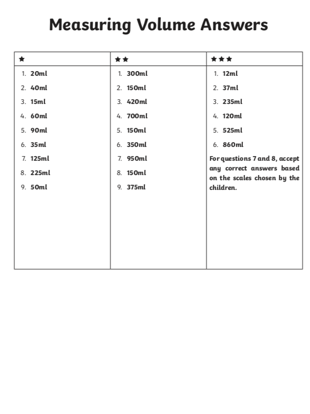 Numeracy: Measuring Liquid Volume (Capacity)