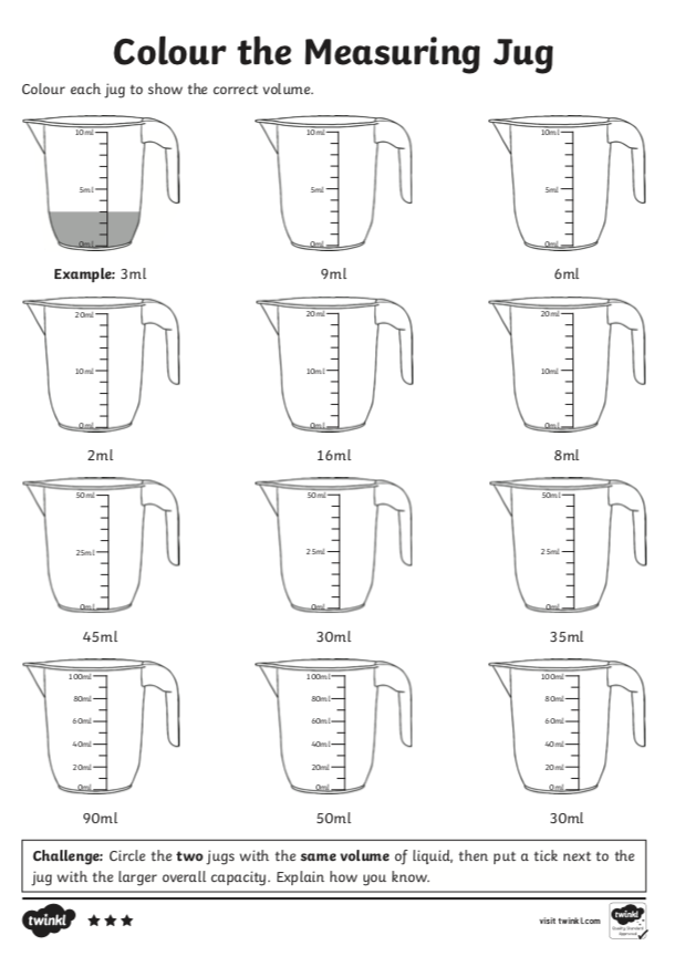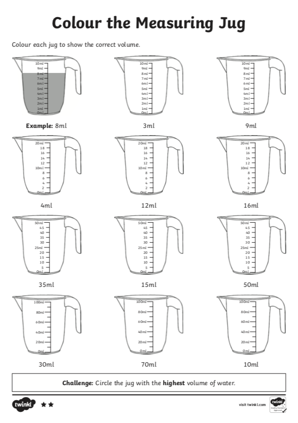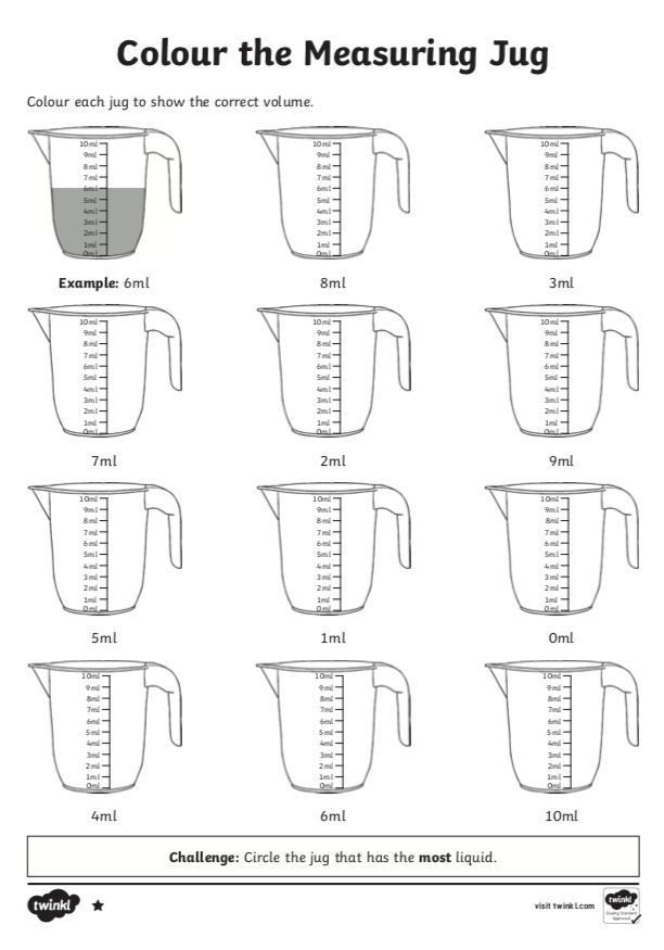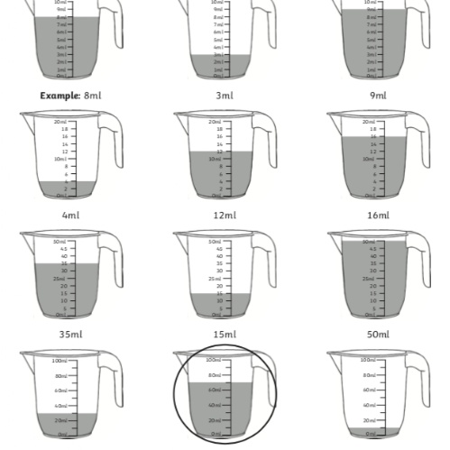 Listen carefully as Mr D demonstrates how to measure a variety of liquid amounts in millitres. Then try your best to complete the tasks below this video.