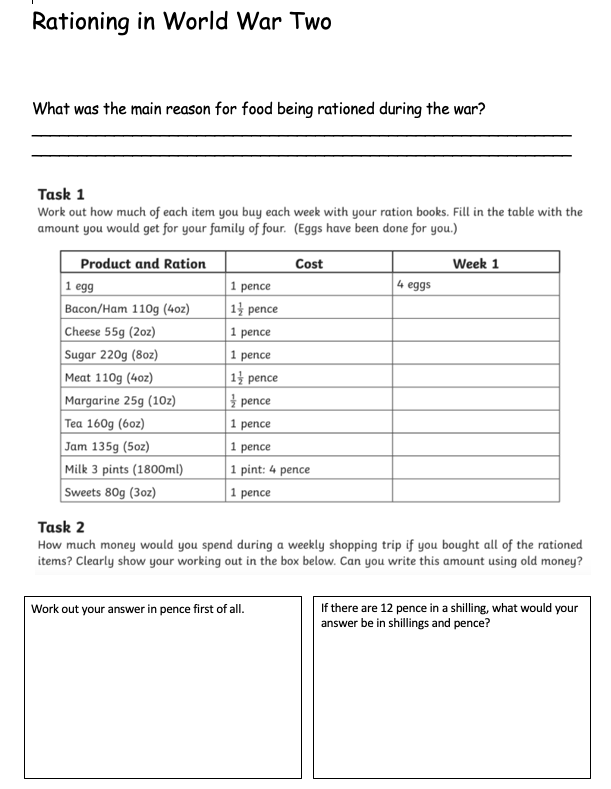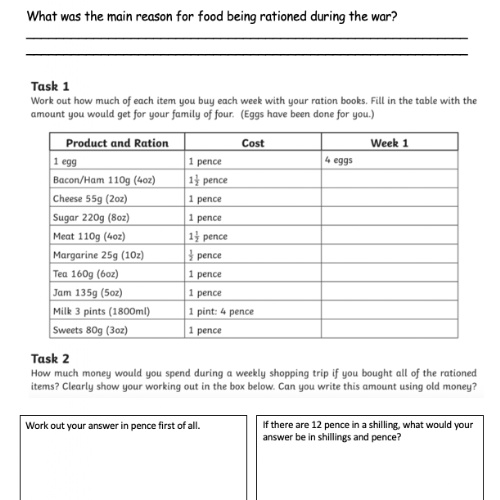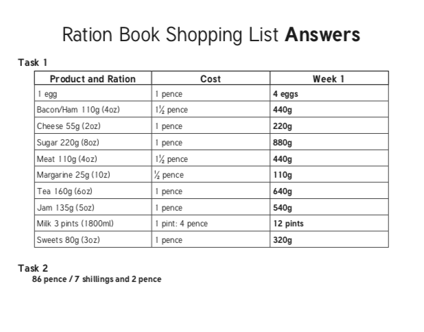Costing your Weekly Ration during World War Two