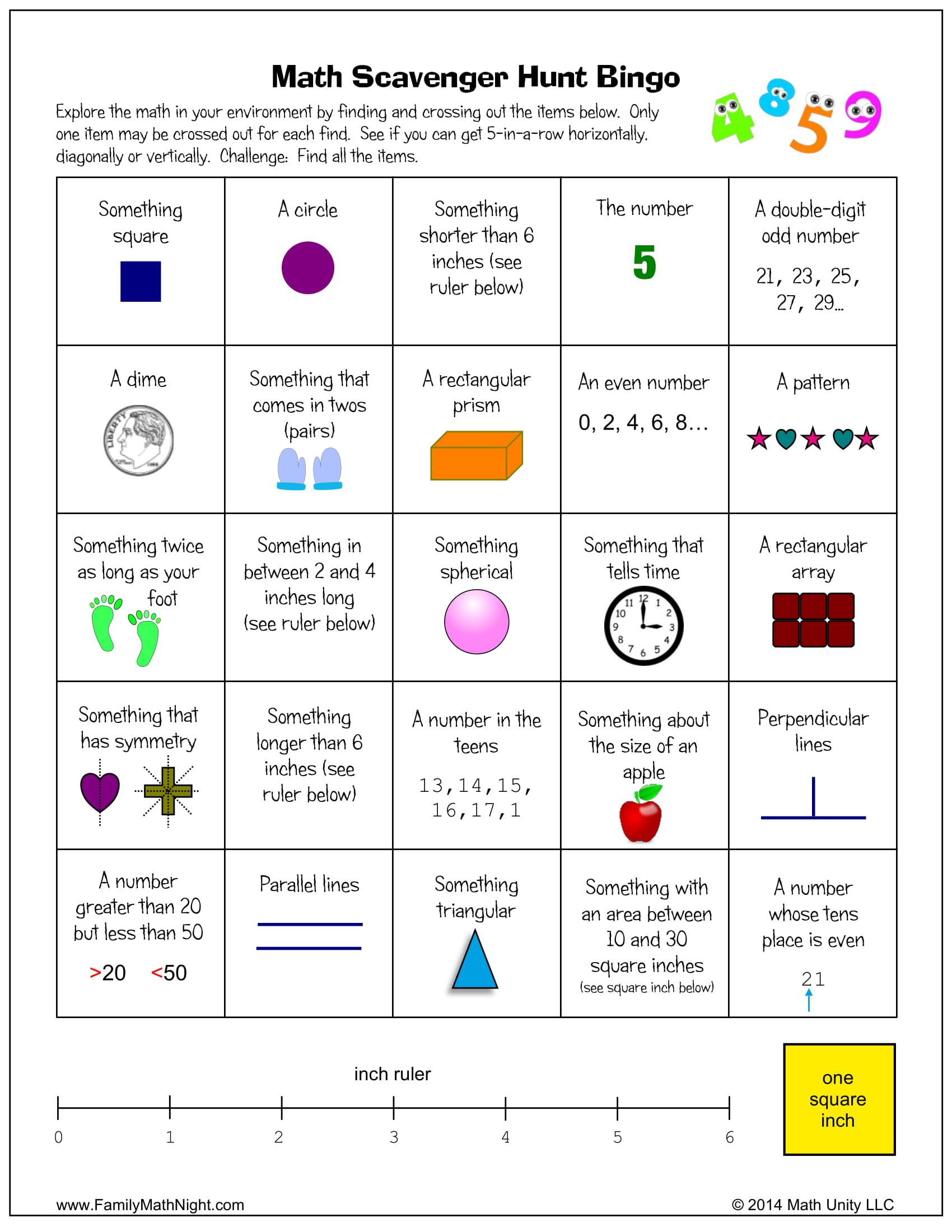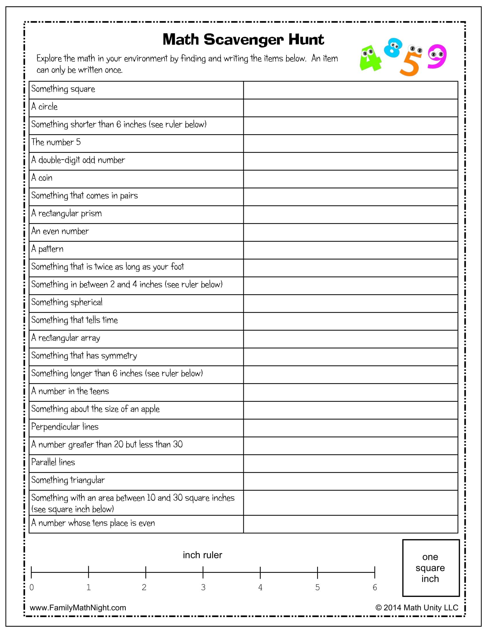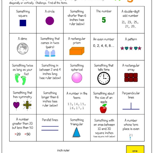 Choose one of the mathematical scavenger hunts below. Your job is to navigate your house and locate all the different mathematical items.