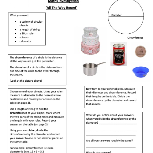 This week we have another investigation for you to complete. This time we are thinking about working out the diameter and circumferences of a range of different circular objects.