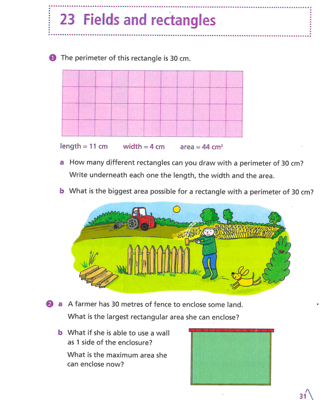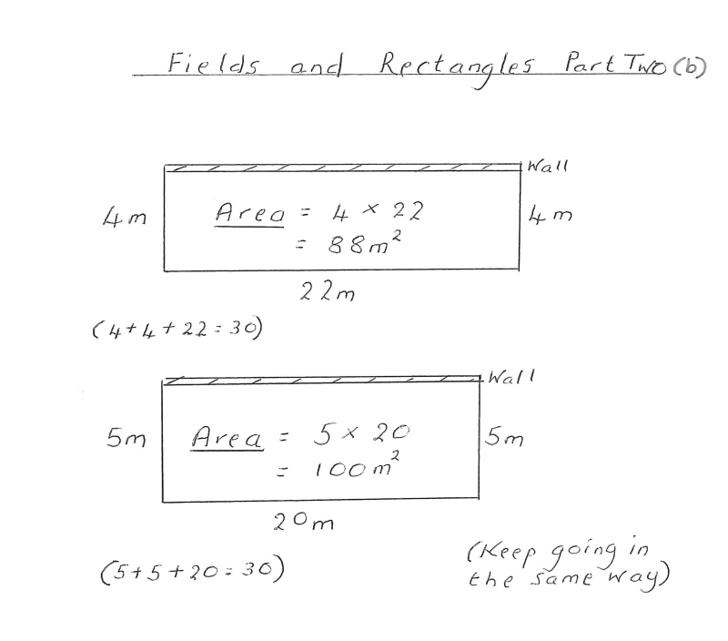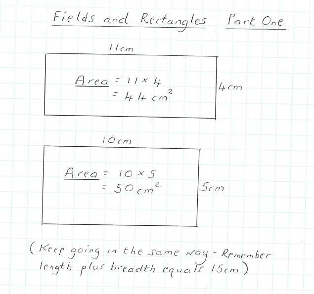 In this task, you have to draw different rectangles which have the same perimeter, recording the area of each one.