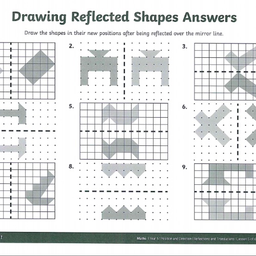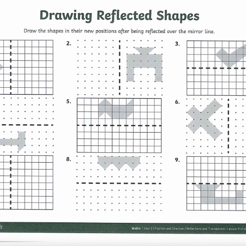 In this task you are asked to draw accurate reflections of shapes drawn on one side of a mirror line.