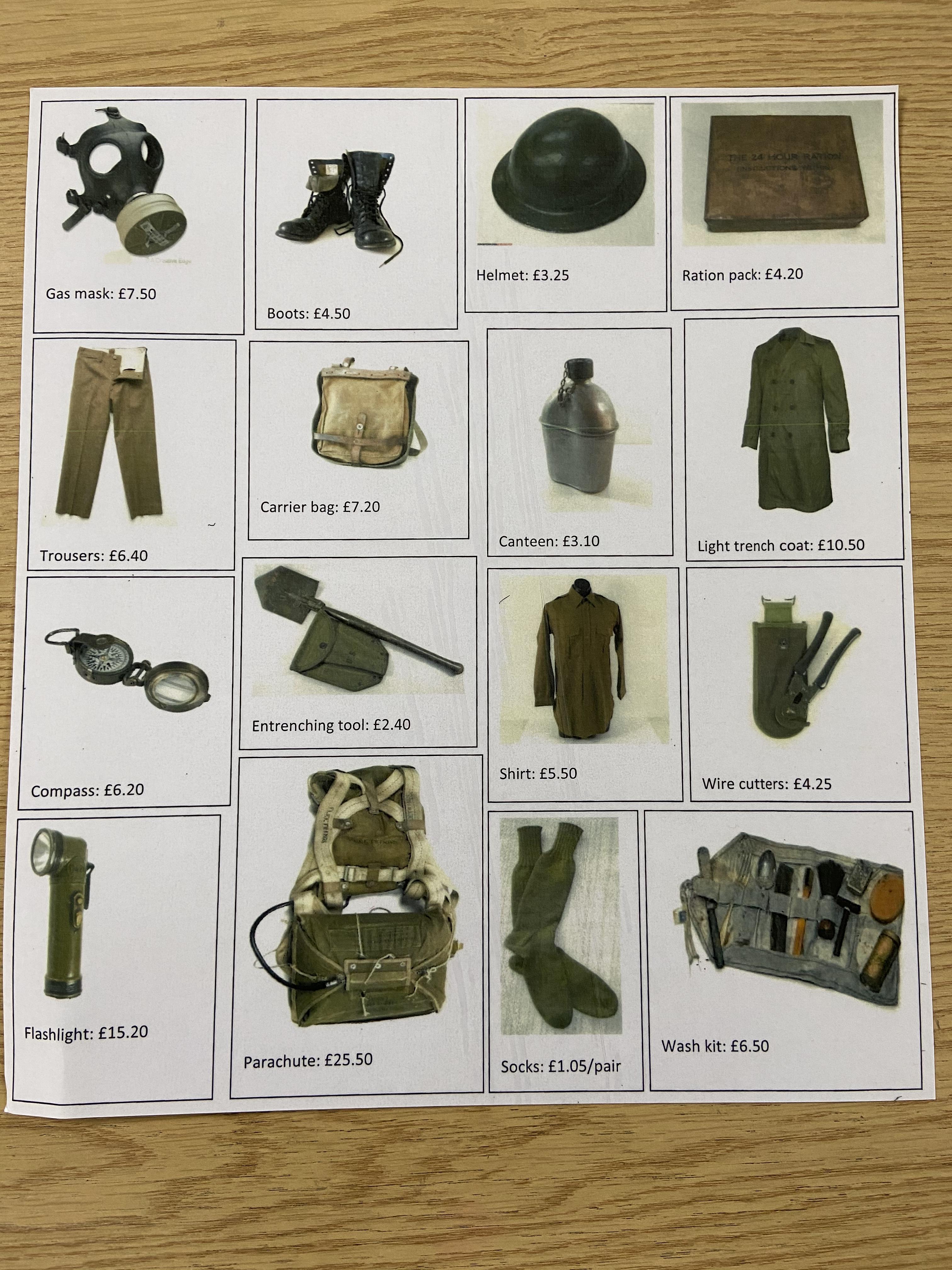 For this activity, you will be given a 'shopping list' of all the things a soldier would need to go to war.