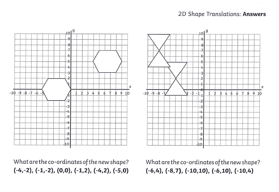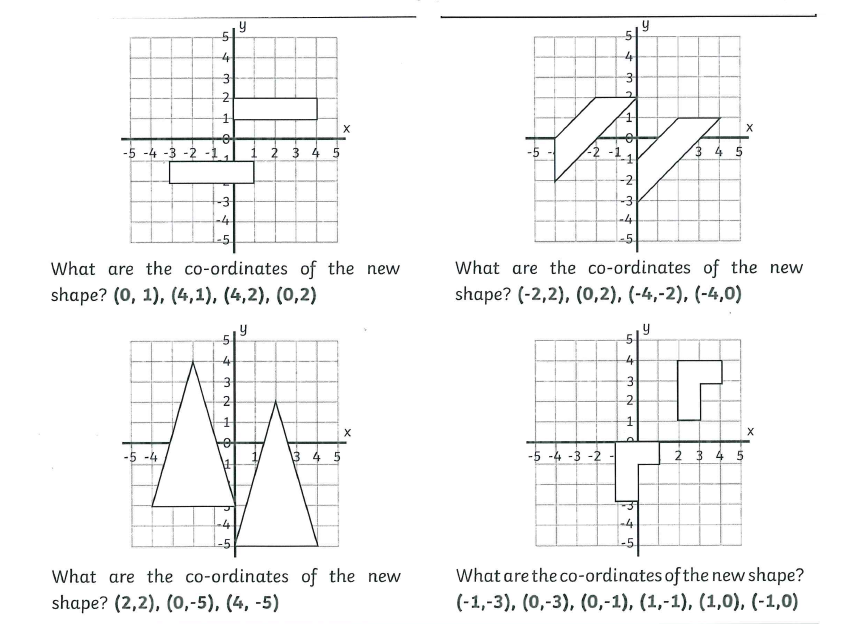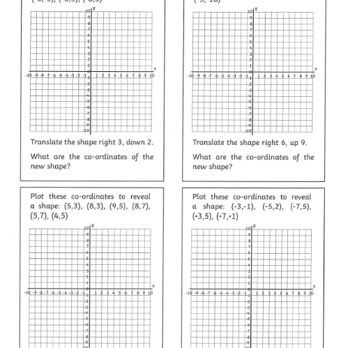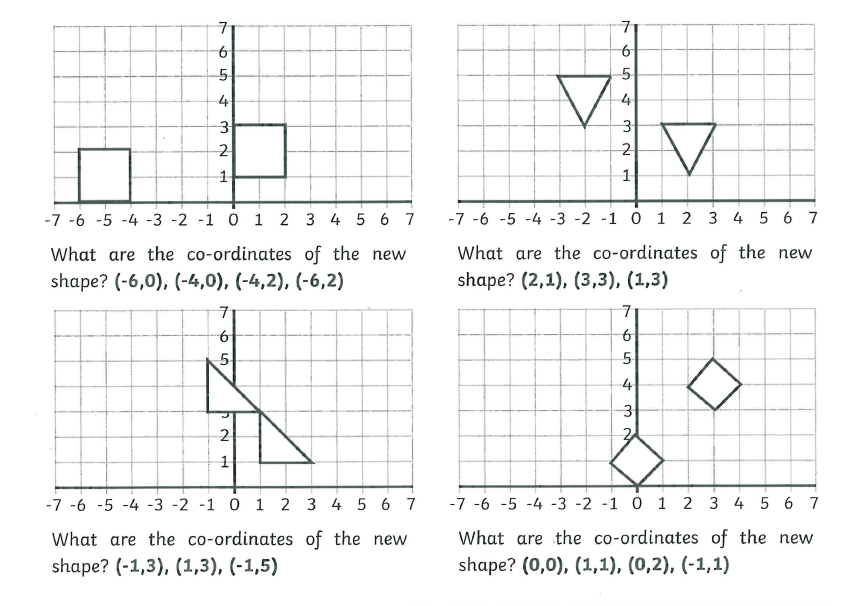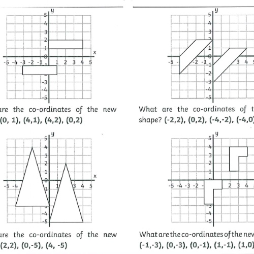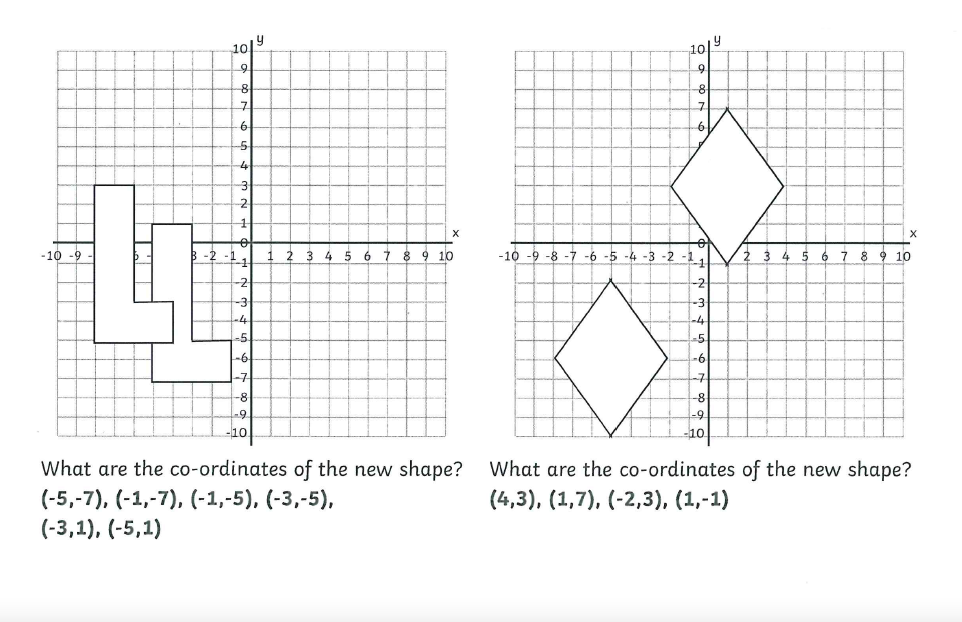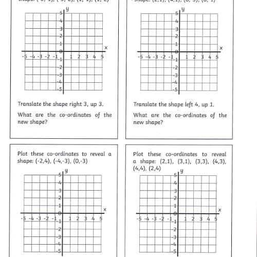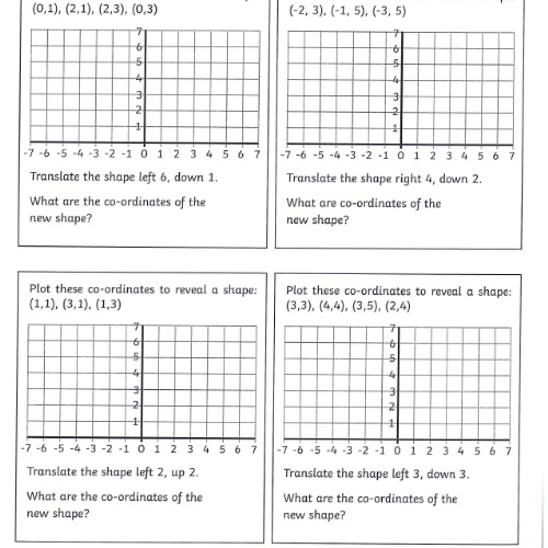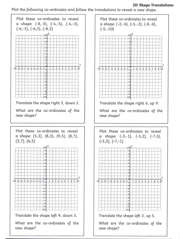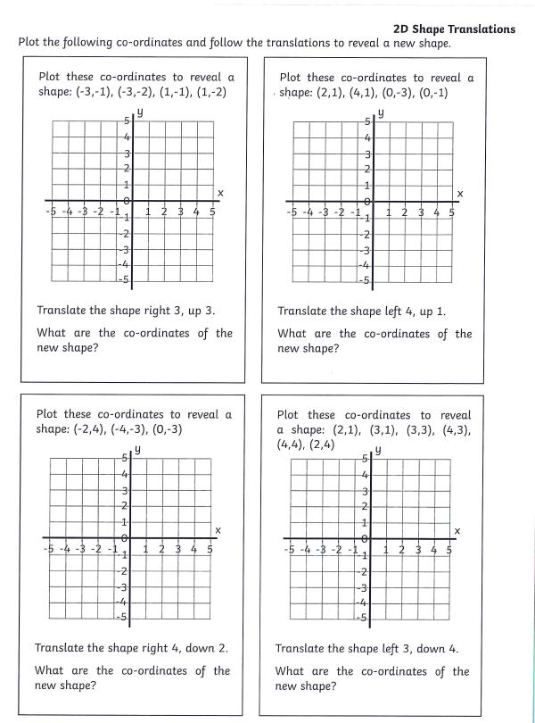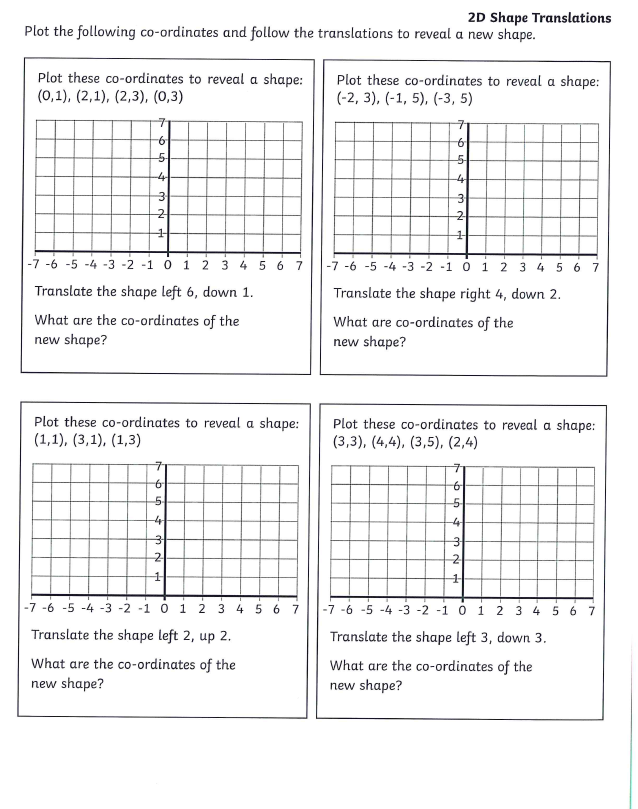 You will also be given the translation instruction. For example 'move the shape 2 squares right and 3 squares down' and you will have to plot the new shape according to these instructions.