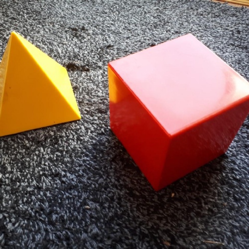 *Why not have a 3D Shape Hunt around your home. Make a table showing all the objects you find that are cubes, cones, spheres, etc.
