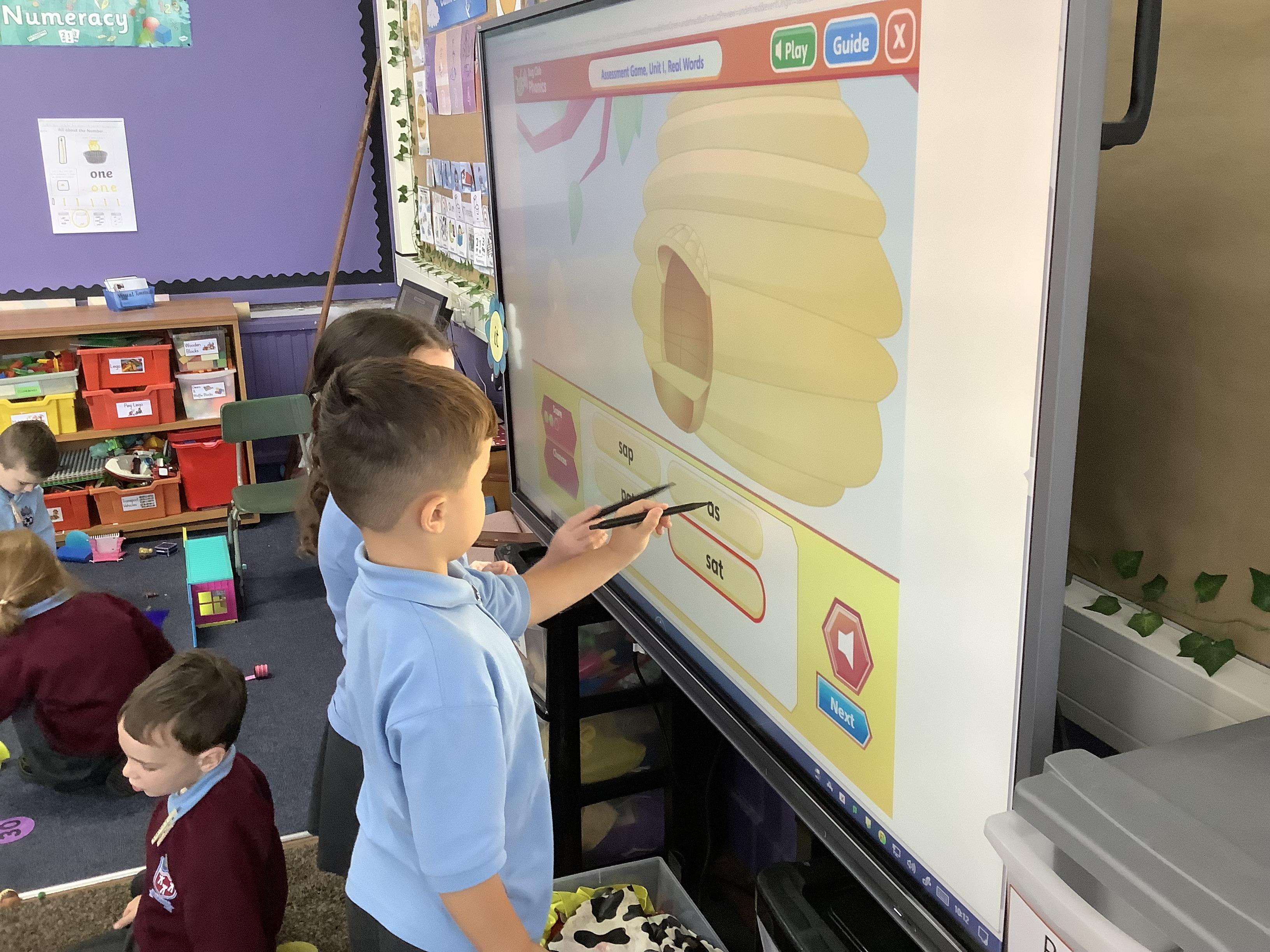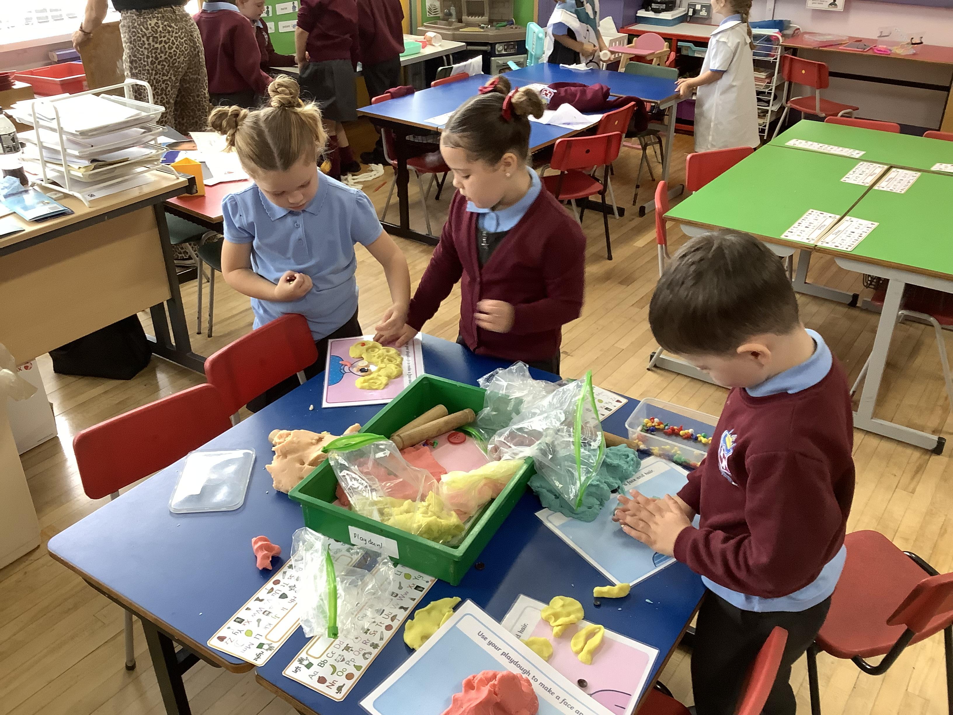 Mrs McNirlan, Mrs Gray, Mrs Ewen and Mrs Wareing look after us and help us learn.