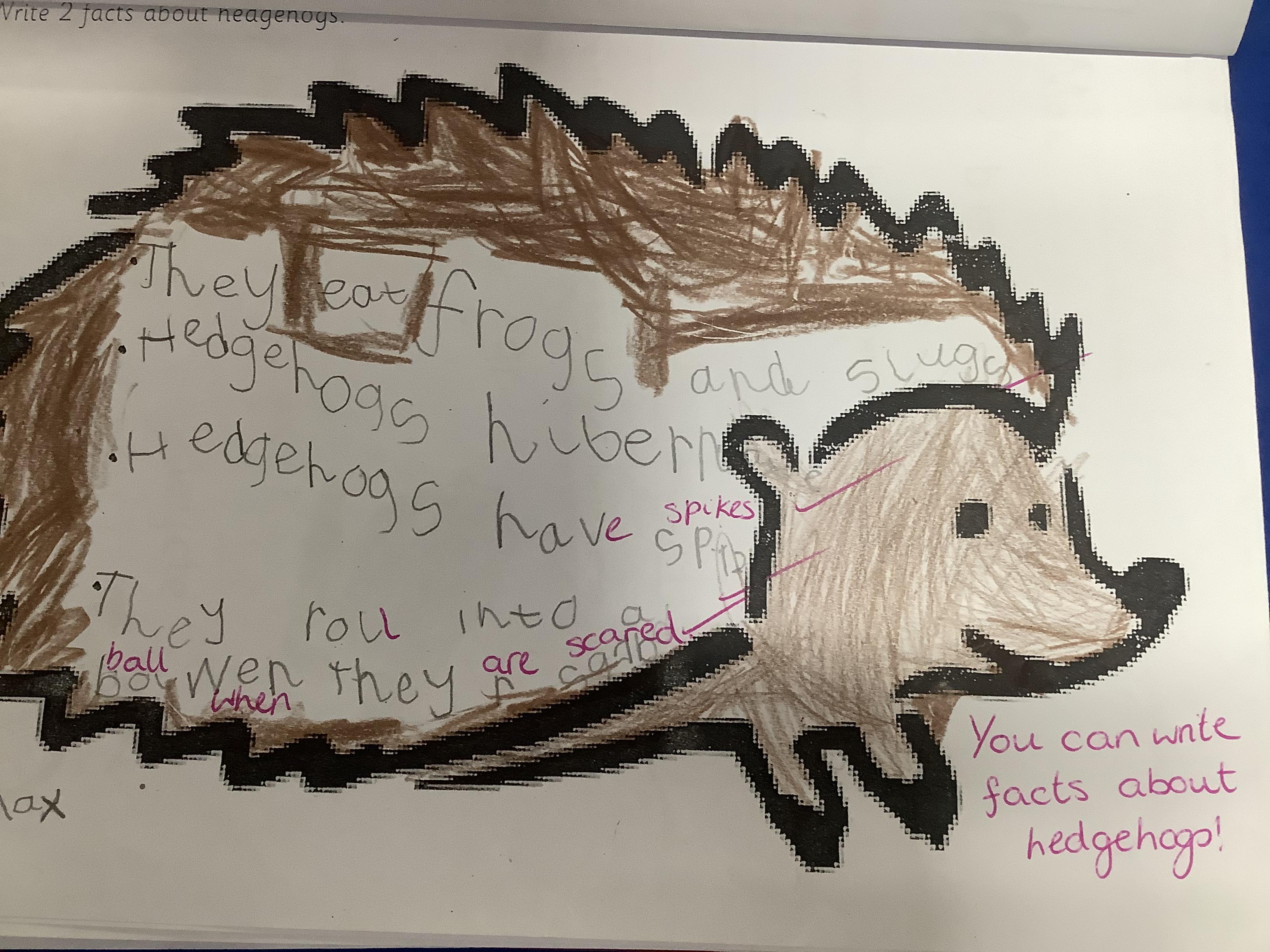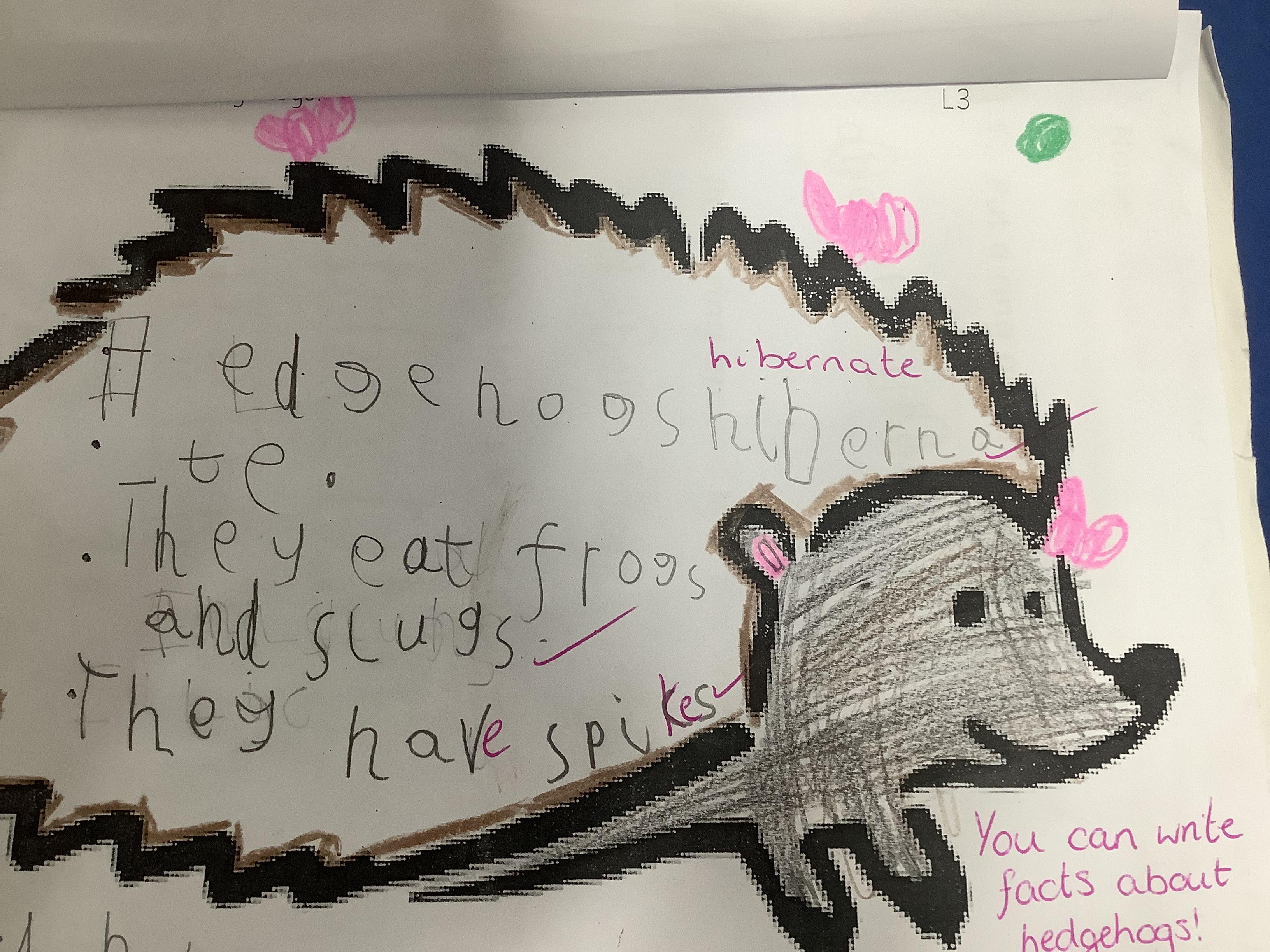 We have been learning all about hedgehogs and hibernation. Have a look at some of our hedgehog facts and our hedgehogs that we made from Playdough.