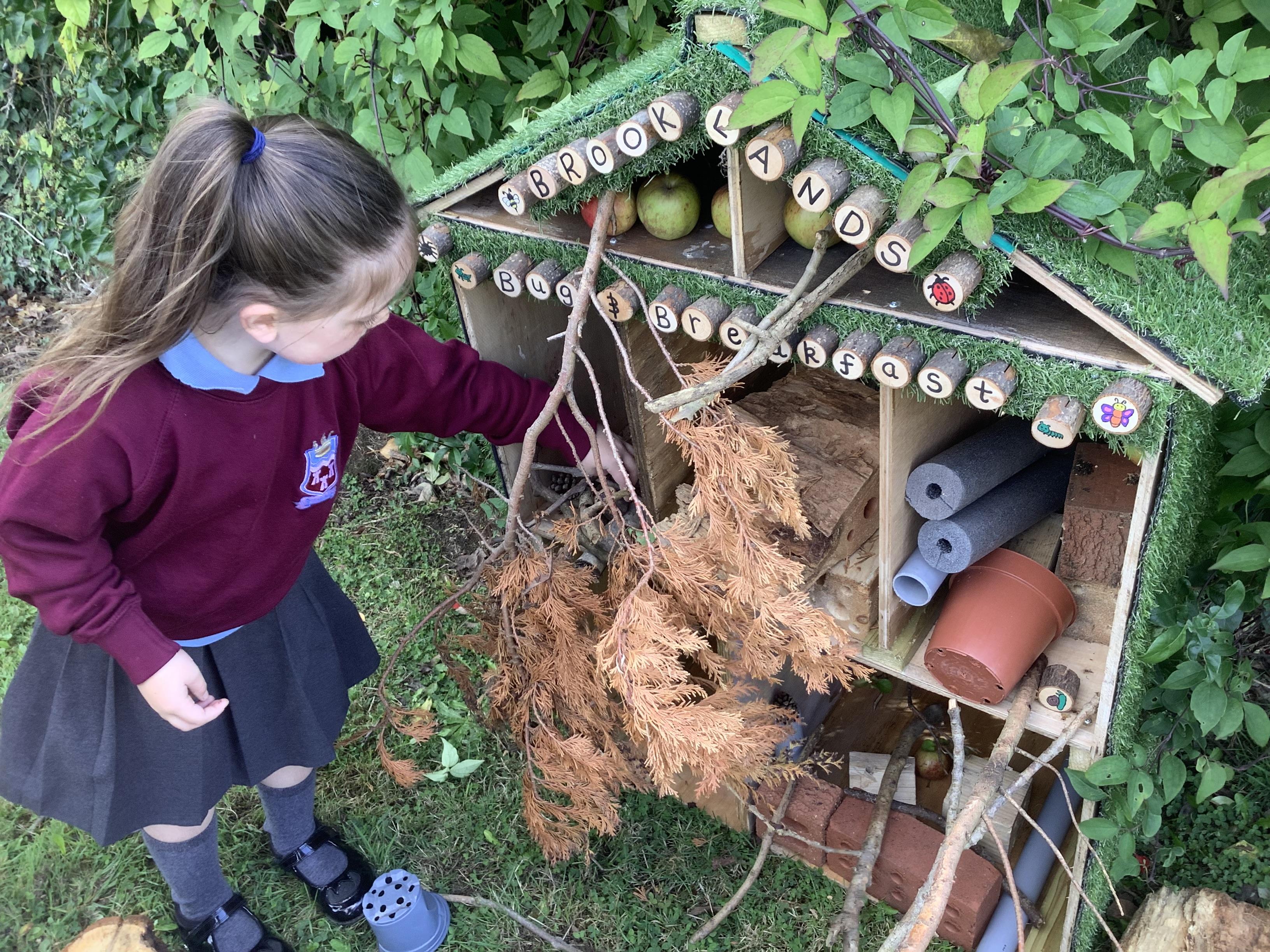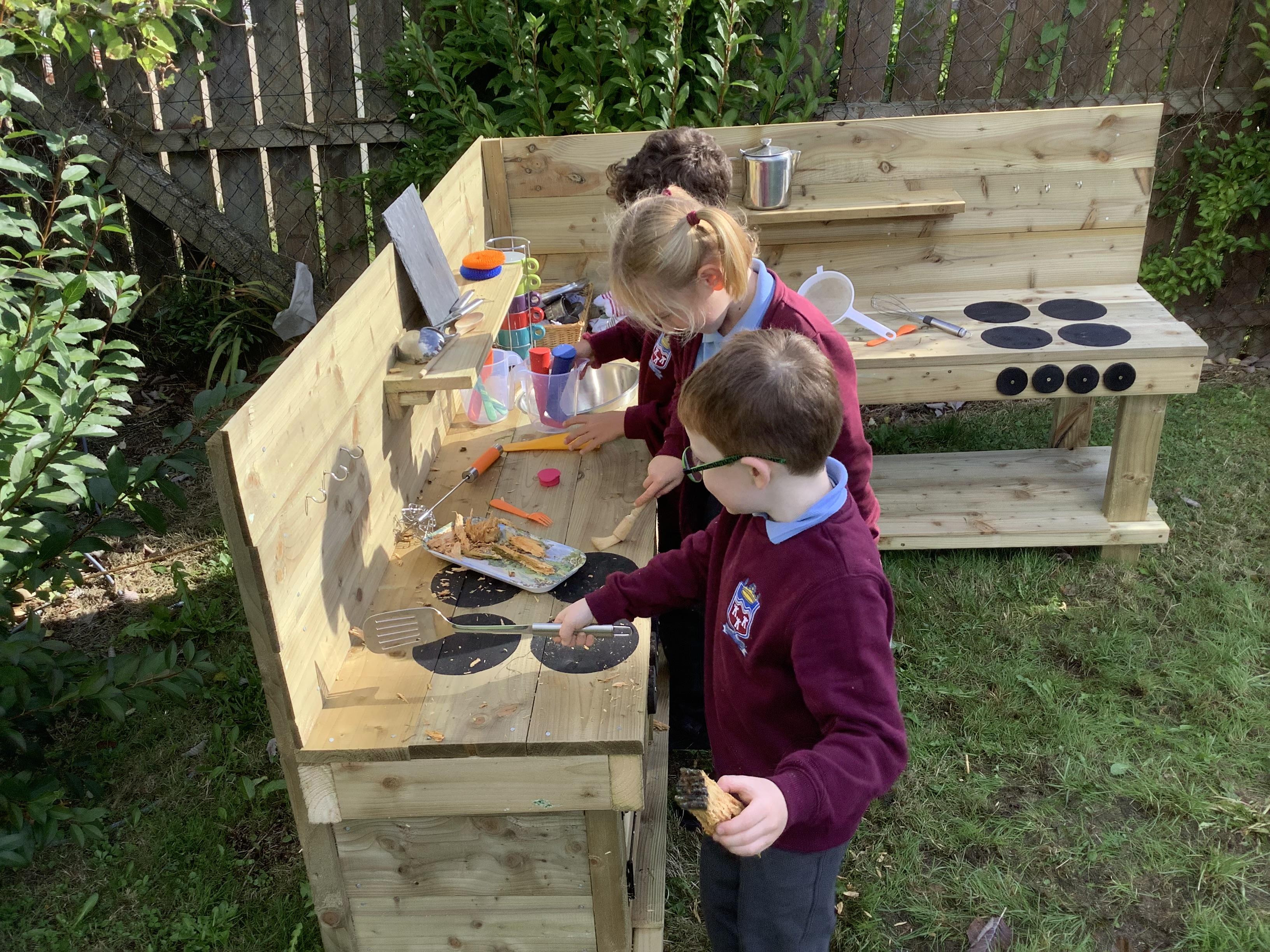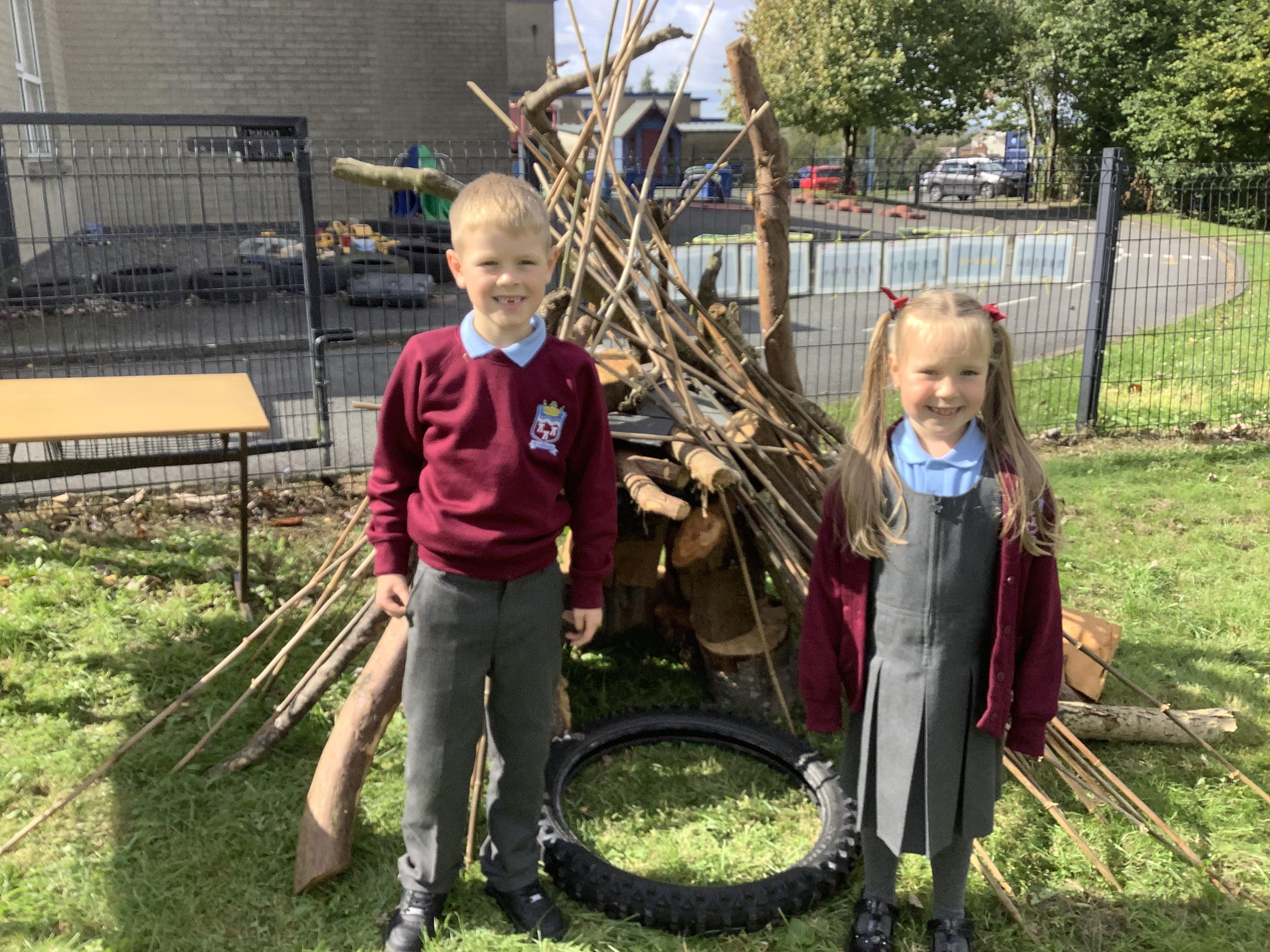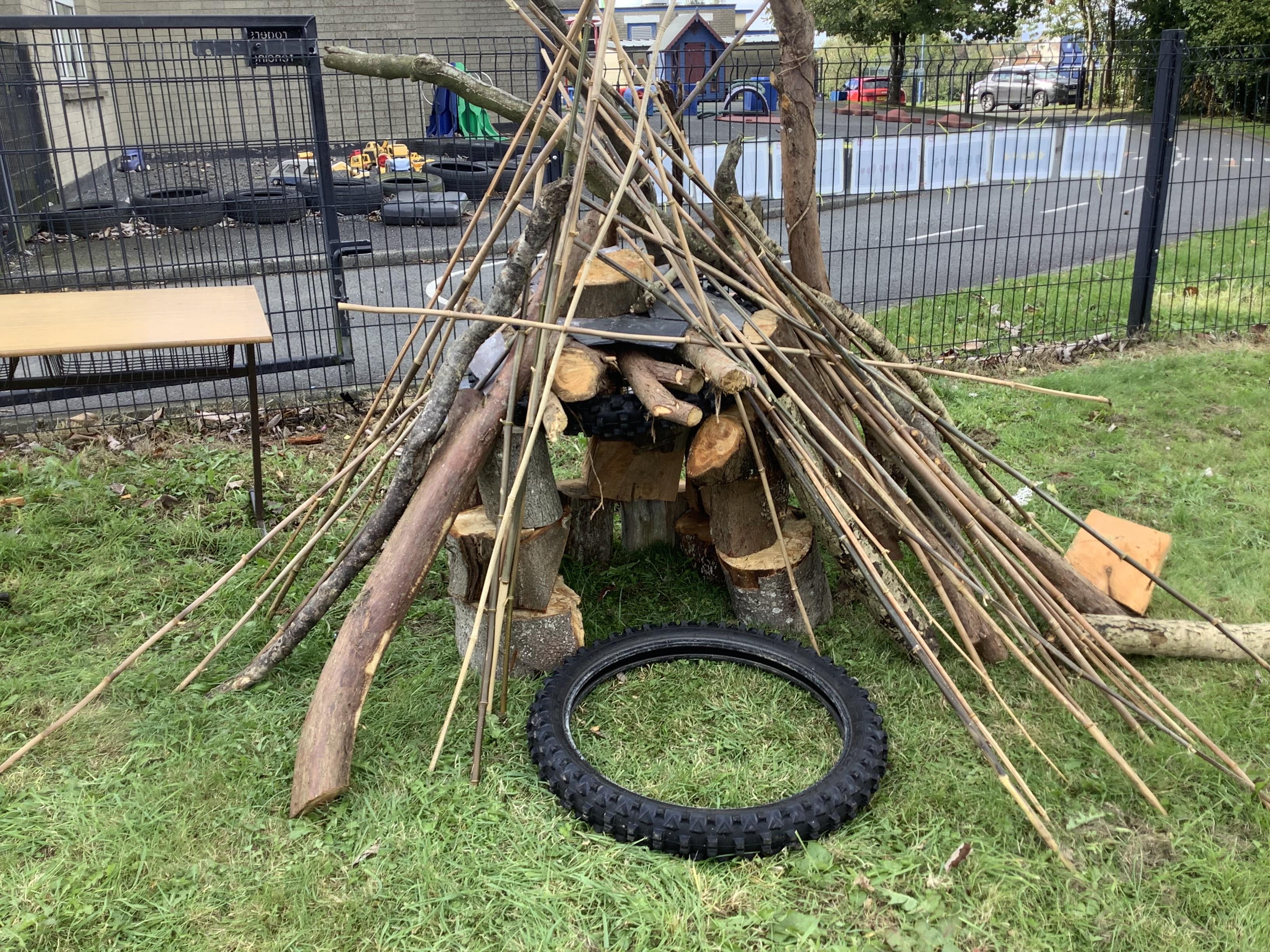 In P3G, we love going to Forest School! We love building dens, playing in the mud kitchen and making artwork with natural materials. Have a look at our photos of us in action!