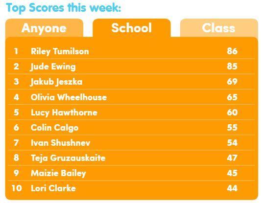 Lots of fantastic scores on this week's Play Live Words game and it's Riley who is currently in the lead!  Will he finish the week in top spot or will someone else steal the crown?  Can you get your name onto this week's leaderboard?  There's only one way to find out - head to Education City now!  Good luck! https://go.educationcity.com/