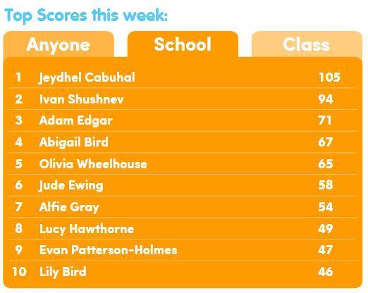 Last week's EducationCity PlayLive Words leaderboard finished with Jeydhel, Ivan and Adam taking the top three spots - well done! The scores reset at the beginning of each week so why don't you challenge yourself to get into this week's top ten? Log In to EducationCity now!