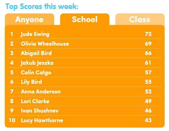 Last week's EducationCity PlayLive Words leaderboard finished with Jude, Olivia and Abigail taking the top three spots - well done! The scores reset at the beginning of each week so why don't you challenge yourself to get into this week's top ten? Log In to EducationCity now!