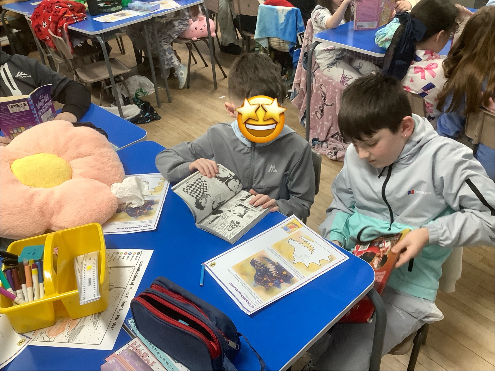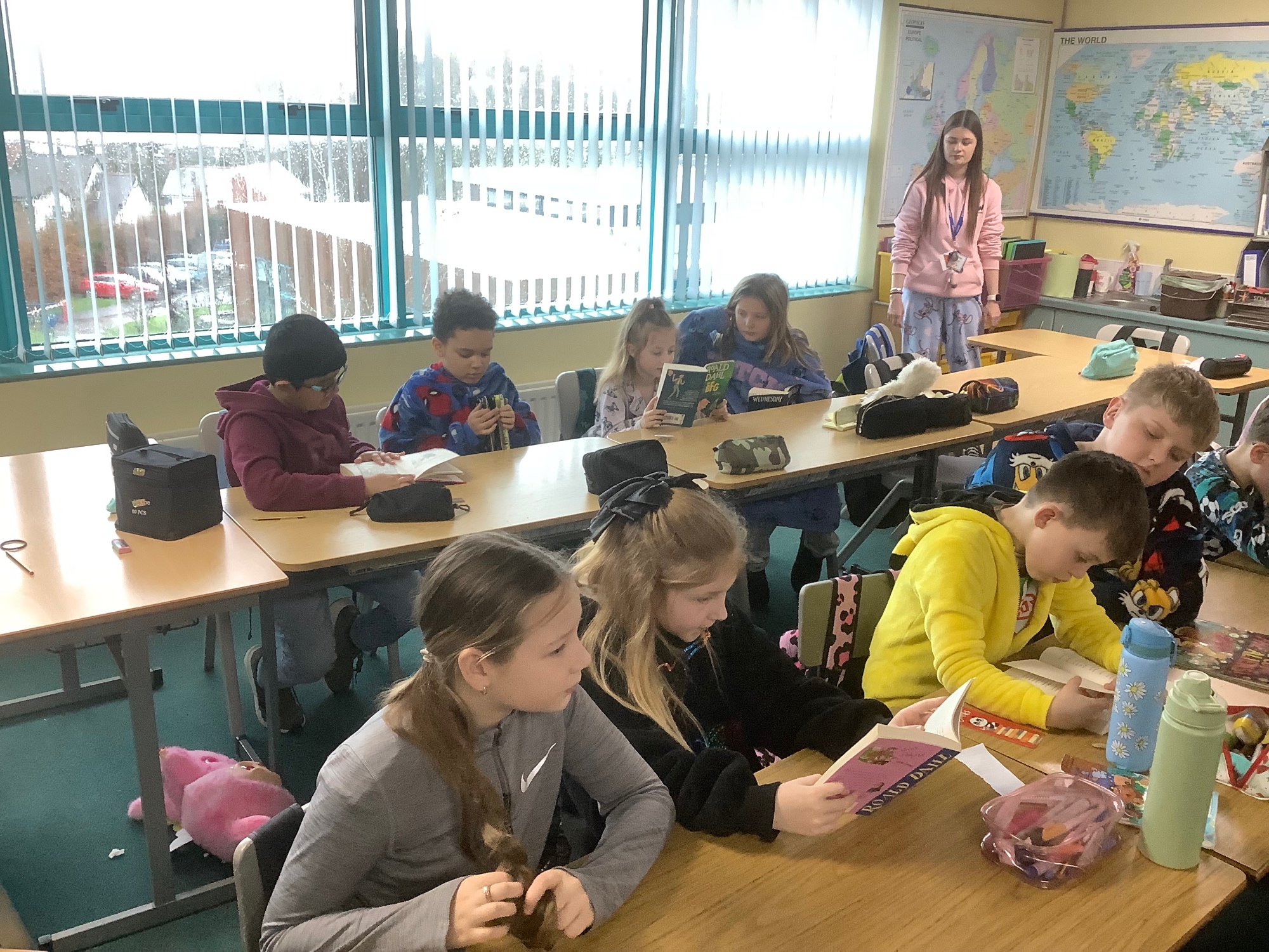 On World Book Day, we read with our new friends from Miss Gillespie's P4 class.