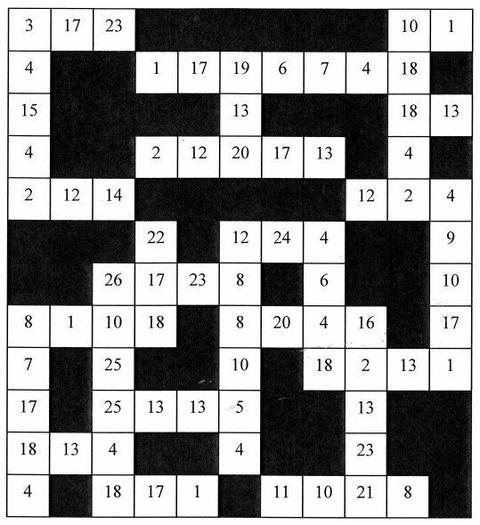 Today's warm-up features a Maths Codeword.  A codeword is set out like a crossword but, when you look closely, you will see that there is a number at the top of each square.  These numbers range from 1 to 26 and each number represents one letter of the alphabet.
