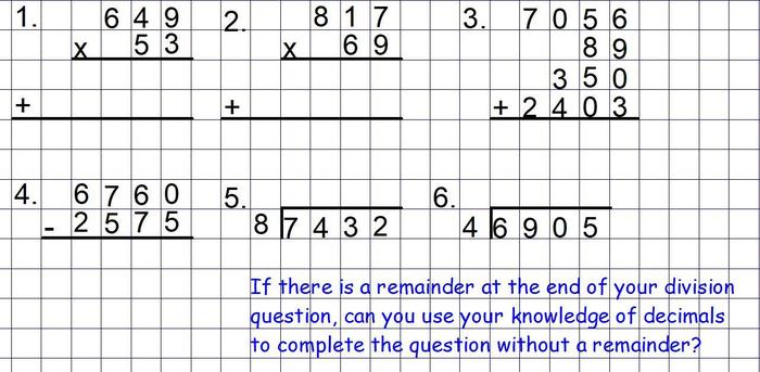 Challenge yourself to complete the questions to the best of your ability. If you get stuck, you can use the 100 square or multiplication/division factsheet to help you.