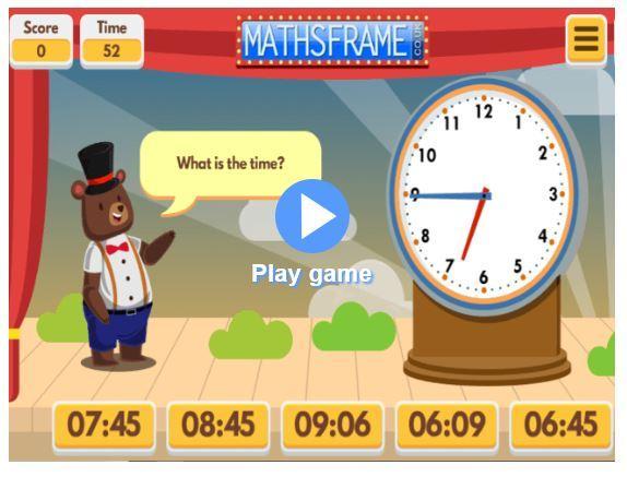 To finish today's work telling the time, head to the Maths Frame website and try their "Telling the Time" game https://mathsframe.co.uk/en/resources/resource/116/telling-the-time