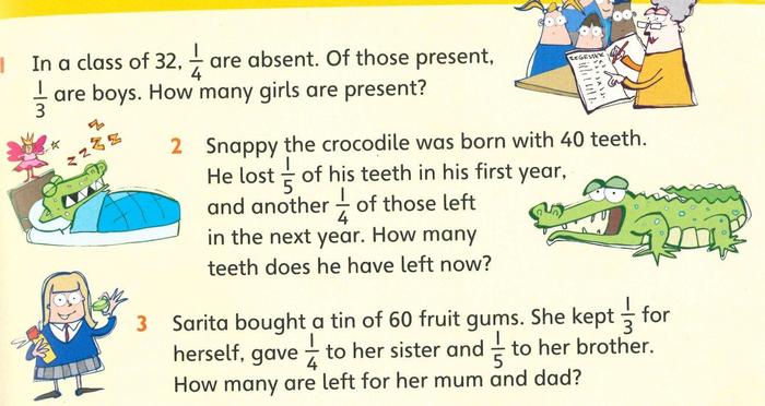 e.g. to find ¾ of 24, we begin by dividing by the denominator