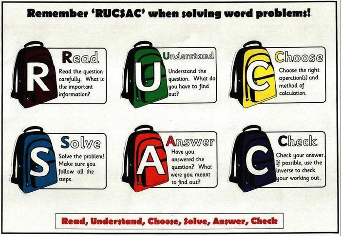 This week's focus is on word problems. In term one, we practised using RUCSAC when answering word problems.