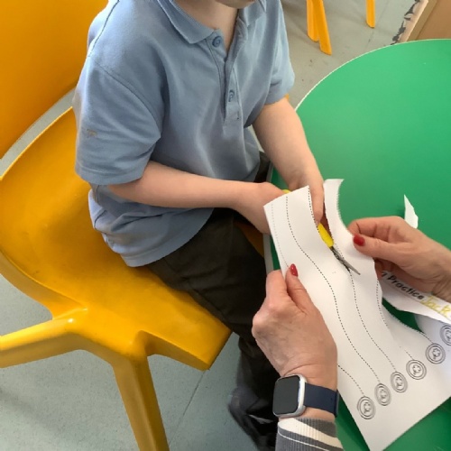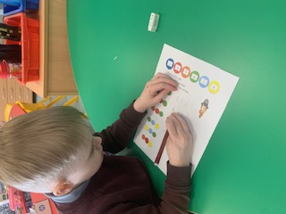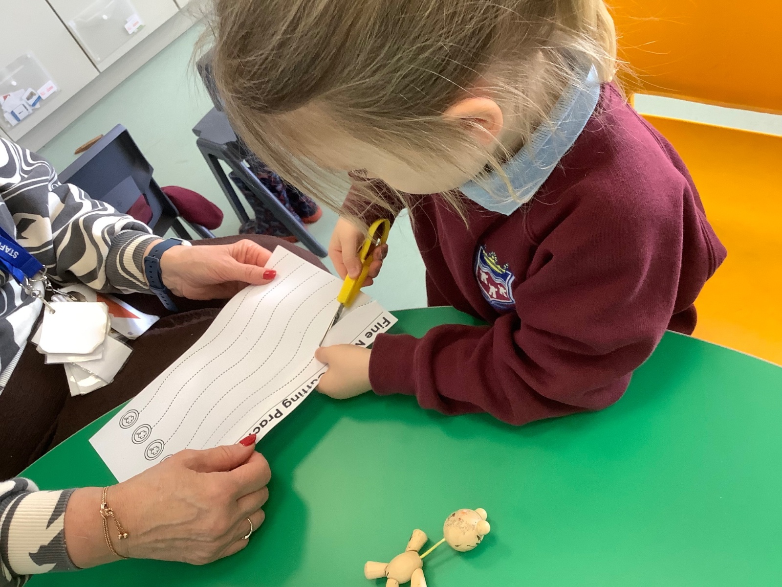 We continue to work hard to develop our Fine Motor Skills in lots of different ways. We use scissors, bingo dabblers, single hole punches and stickers to name a few.