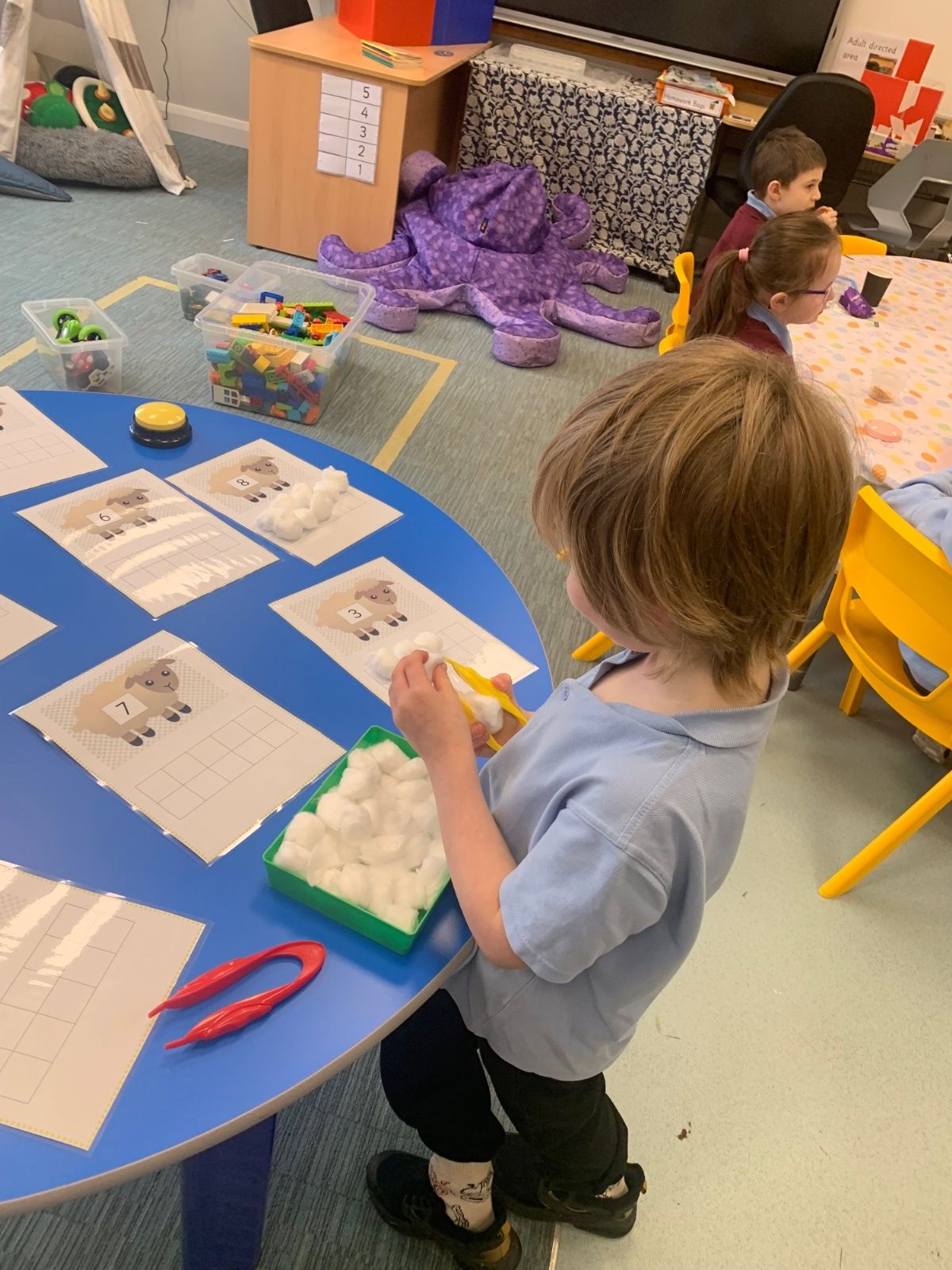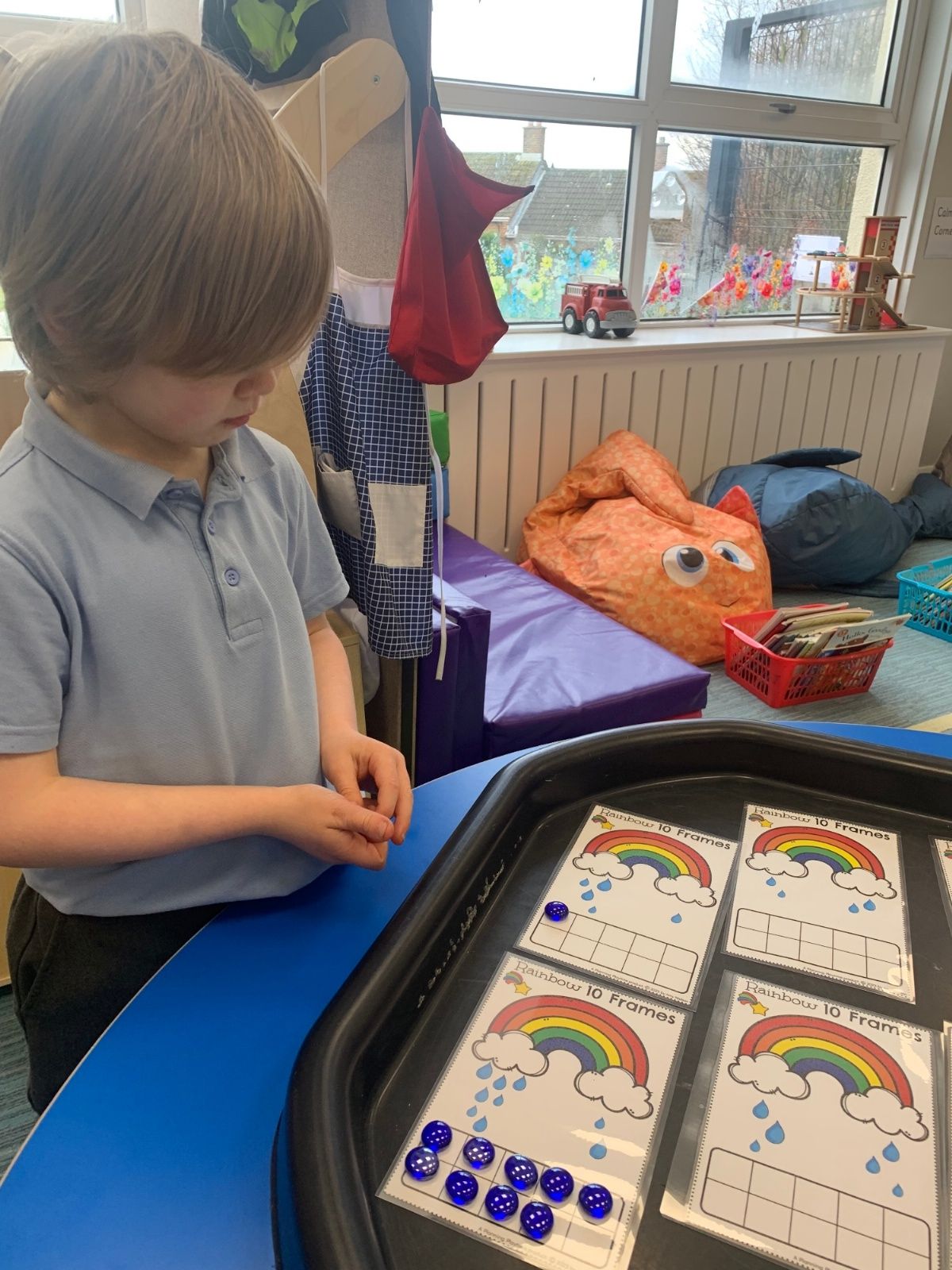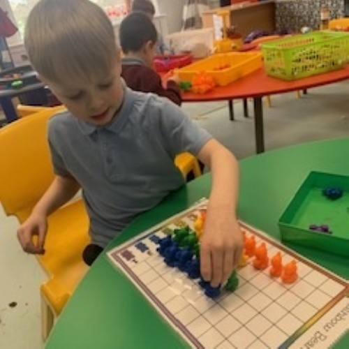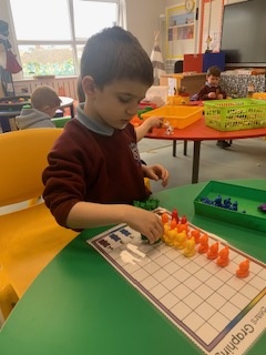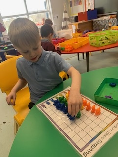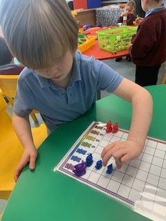 We have been practising our subsidising skills today playing a game with Mrs Todd to see who can build their ten frame first. We have been working on turn taking and having to, at times, miss a go as we rolled a number that was bigger than the number of spaces we had left on our ten frames. Mrs Todd unfortunately did not win even one game!