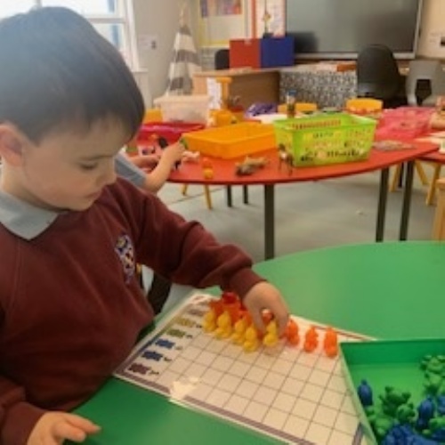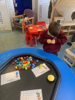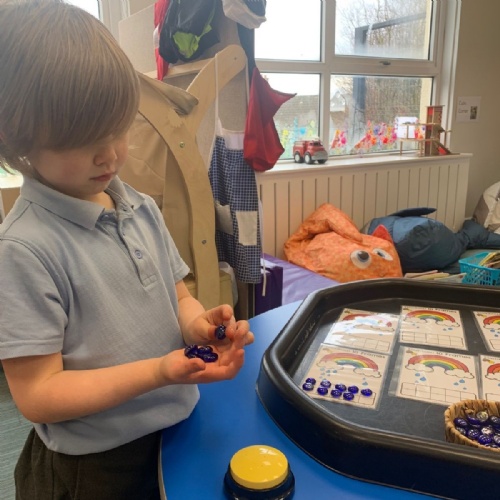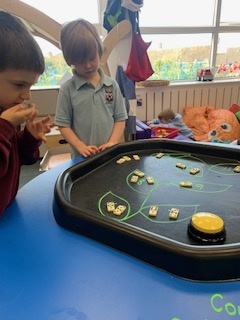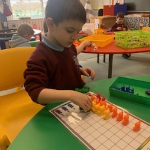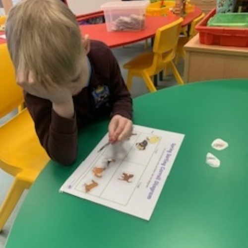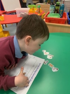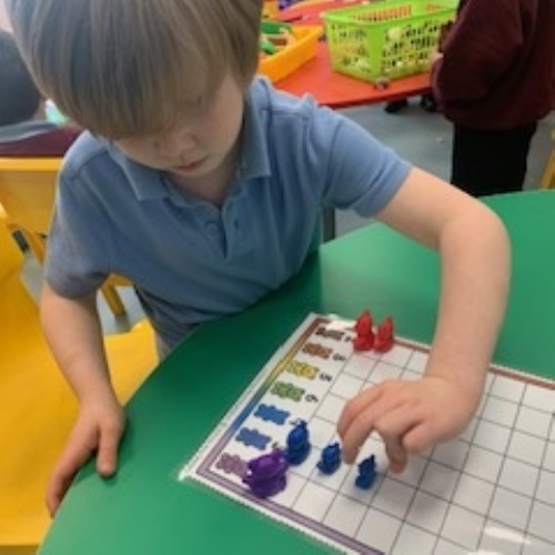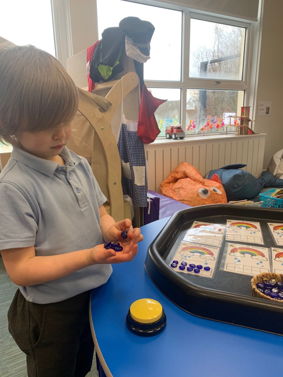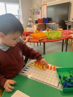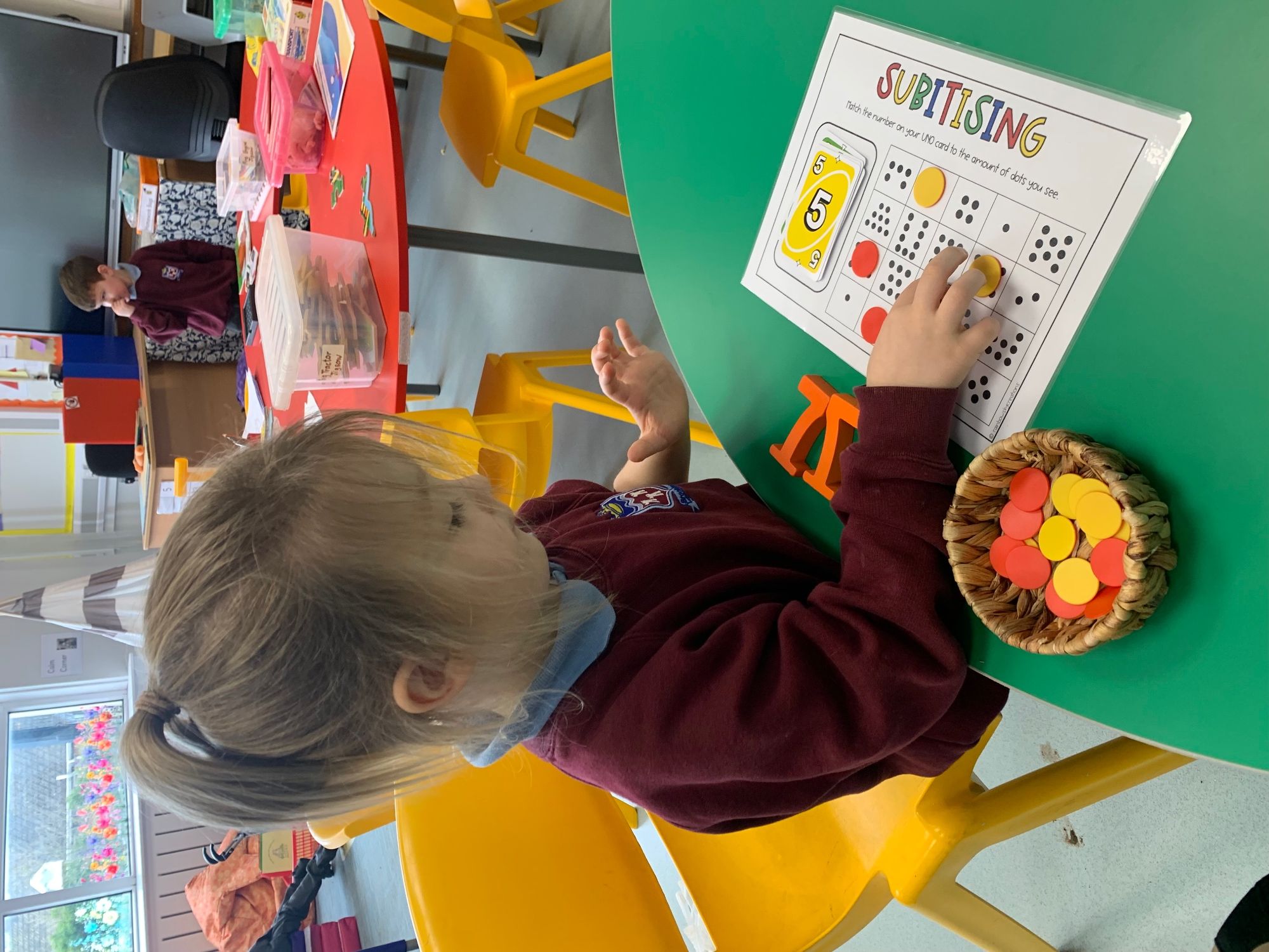 We have been practising our subsidising skills today playing a game with Mrs Todd to see who can build their ten frame first. We have been working on turn taking and having to, at times, miss a go as we rolled a number that was bigger than the number of spaces we had left on our ten frames. Mrs Todd unfortunately did not win even one game!