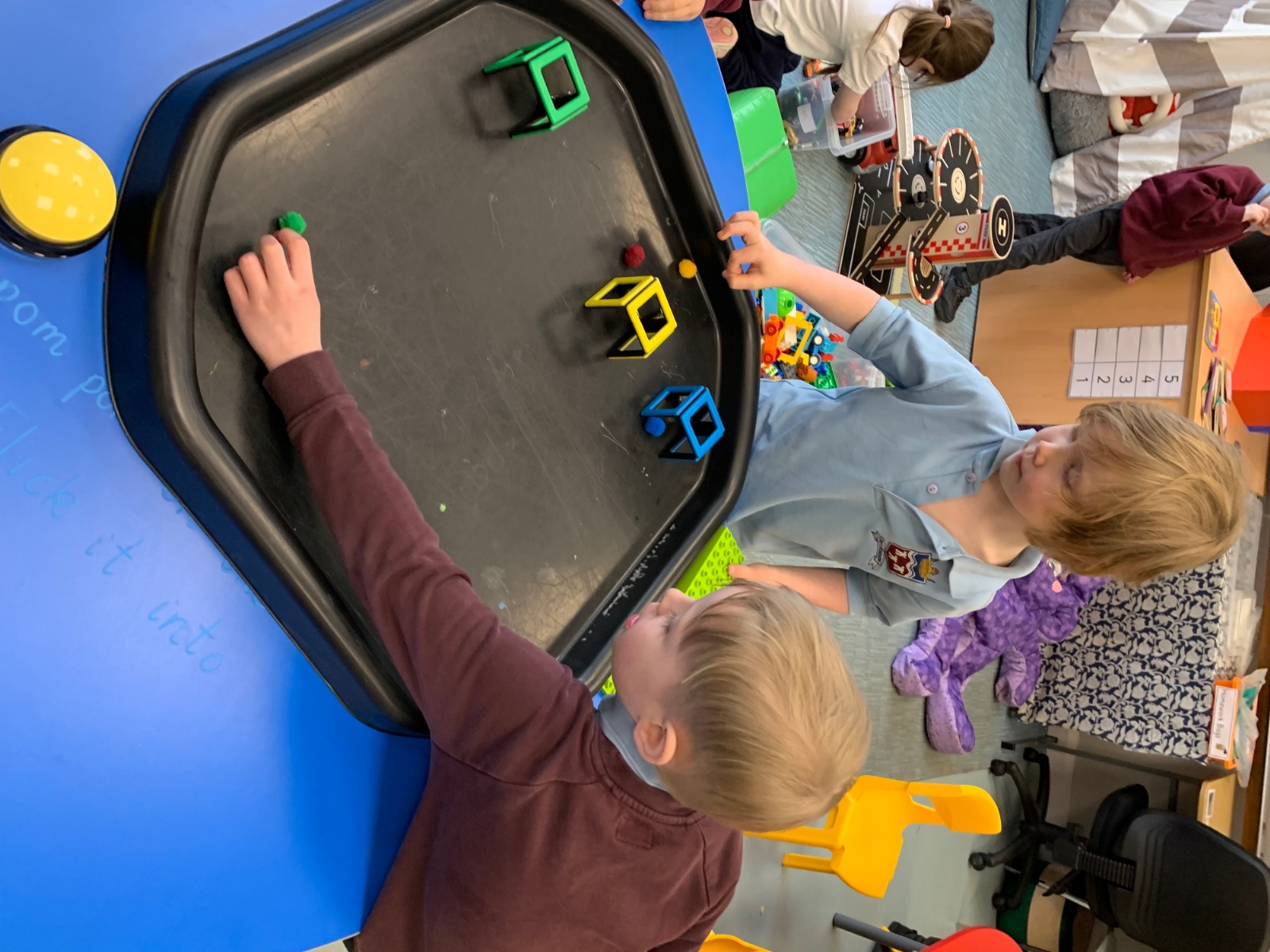 Mrs Massey forgot to take photographs of us having fun with our Tuff Tray challenge today! Hopefully she will remember tomorrow!