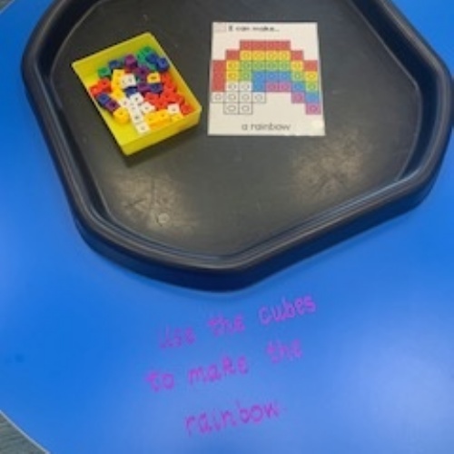 Challenge: – Build the patterns of rainbow stairs using the cubes.