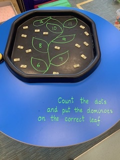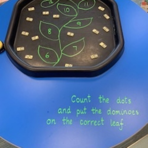 Challenge:- Count the pips on the dominoes and put them on the correct leaf.